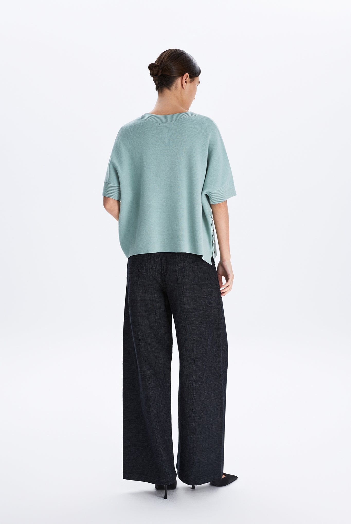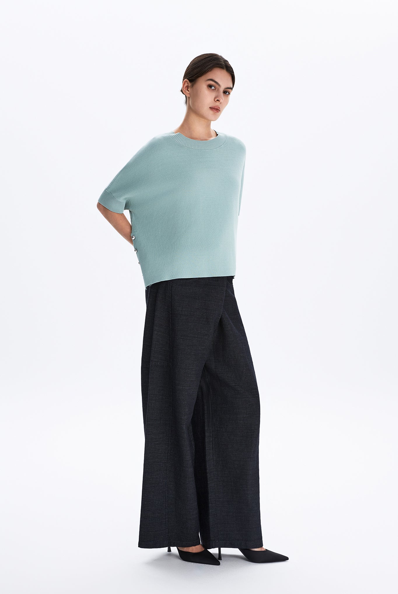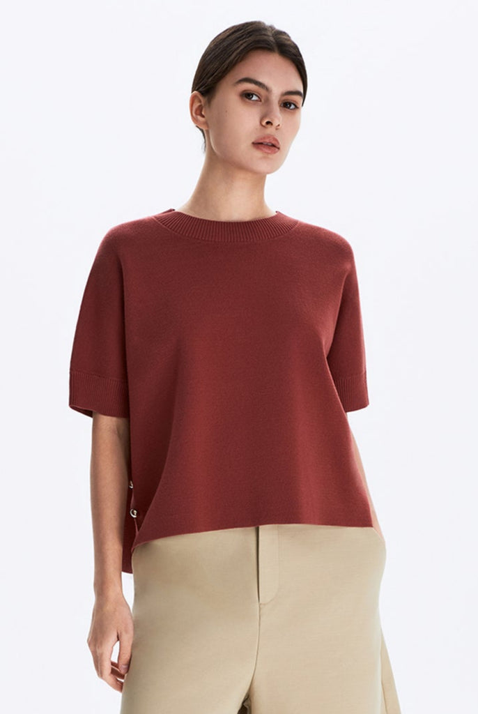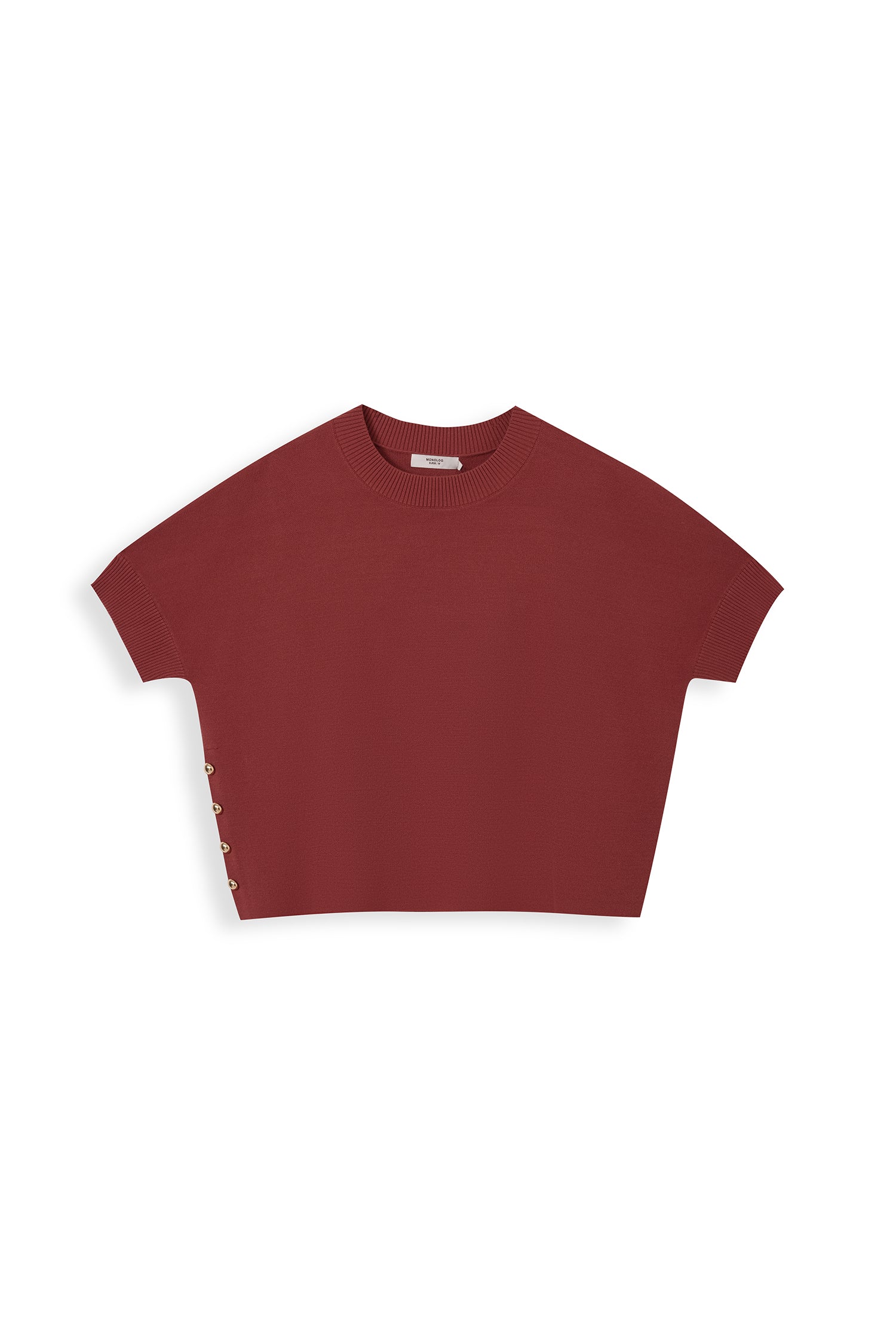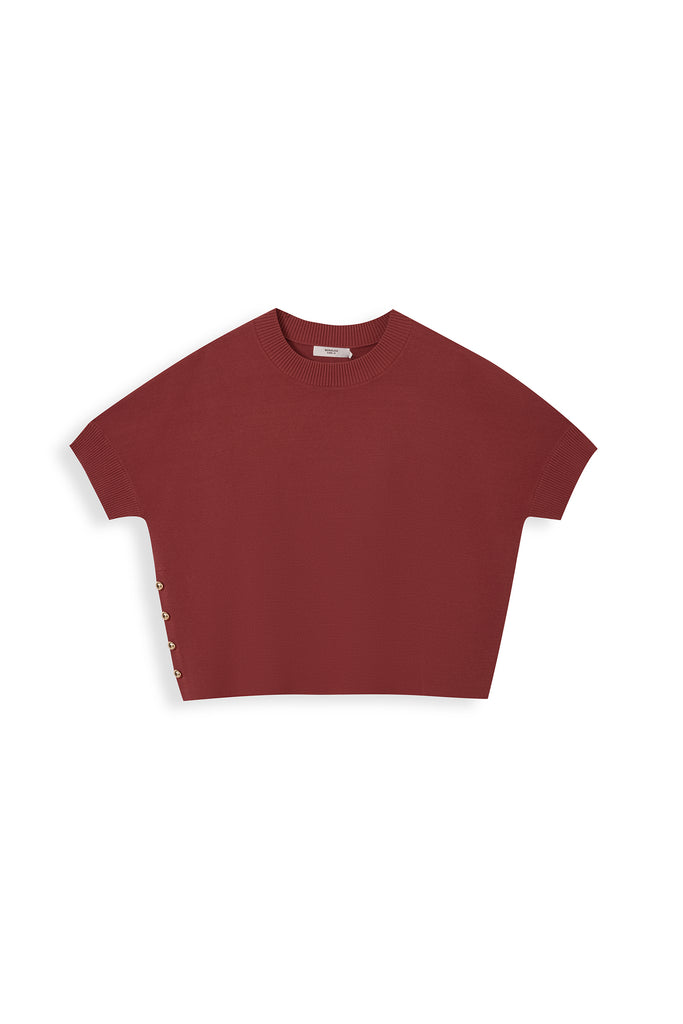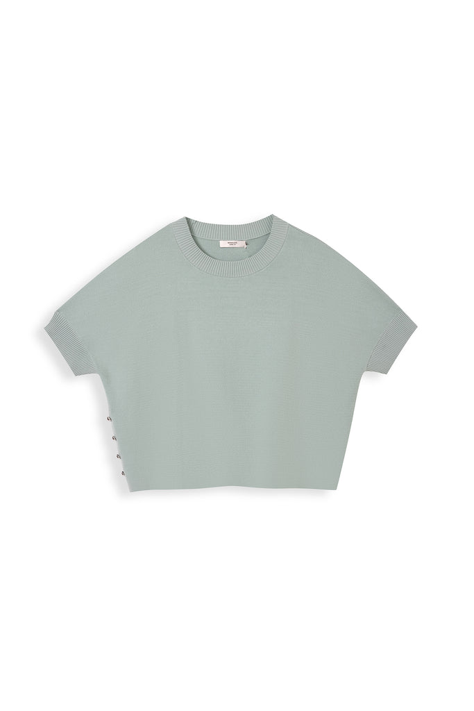 Add a playful twist to your wardrobe with this decorative-button knit top, where style meets cosy charm in the most exciting way!