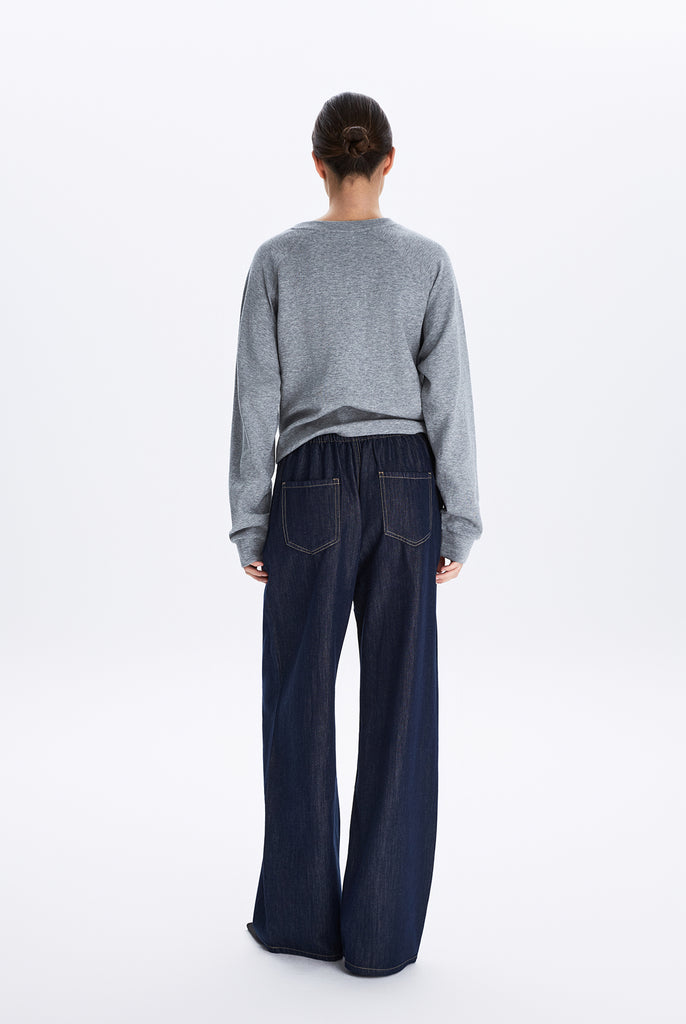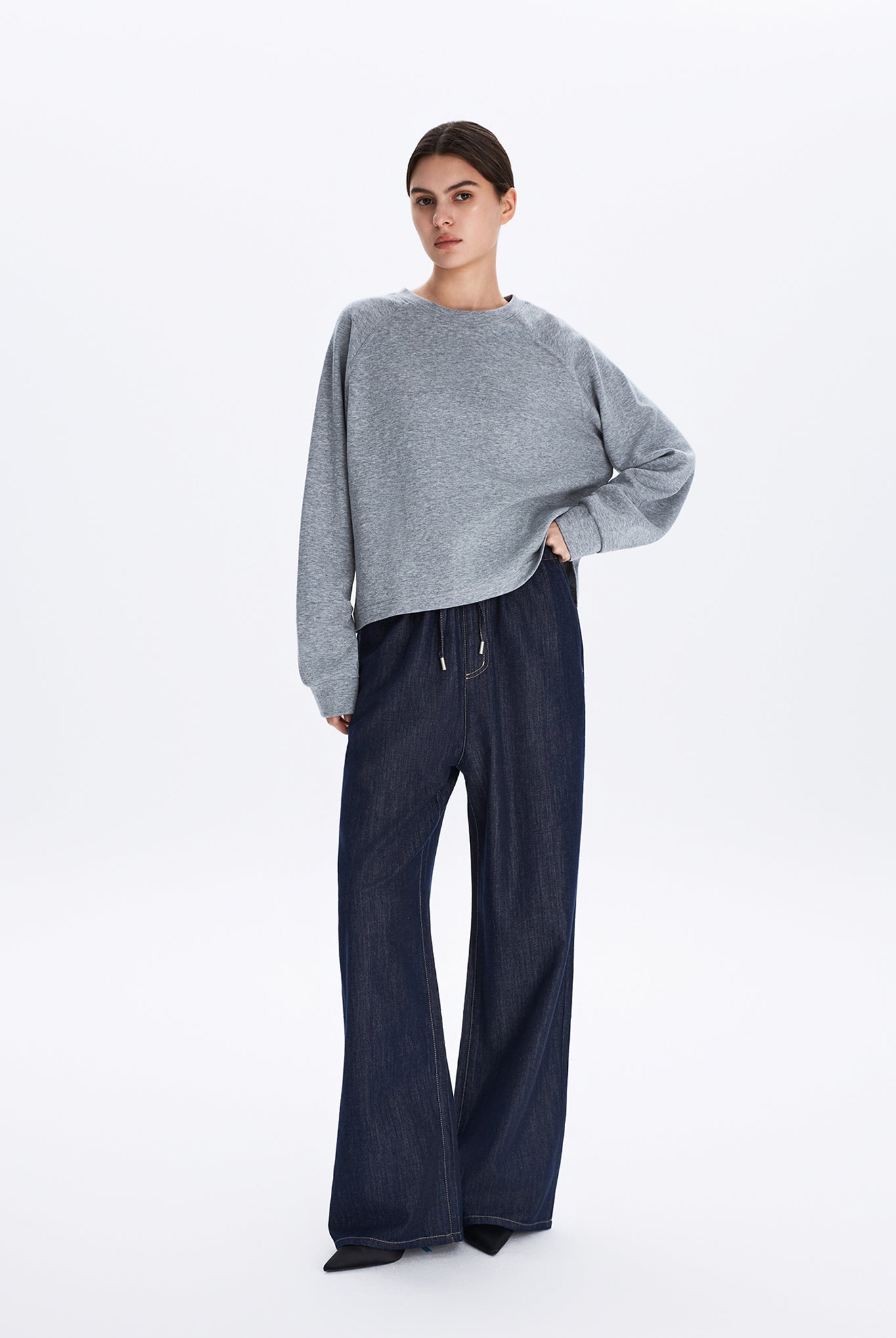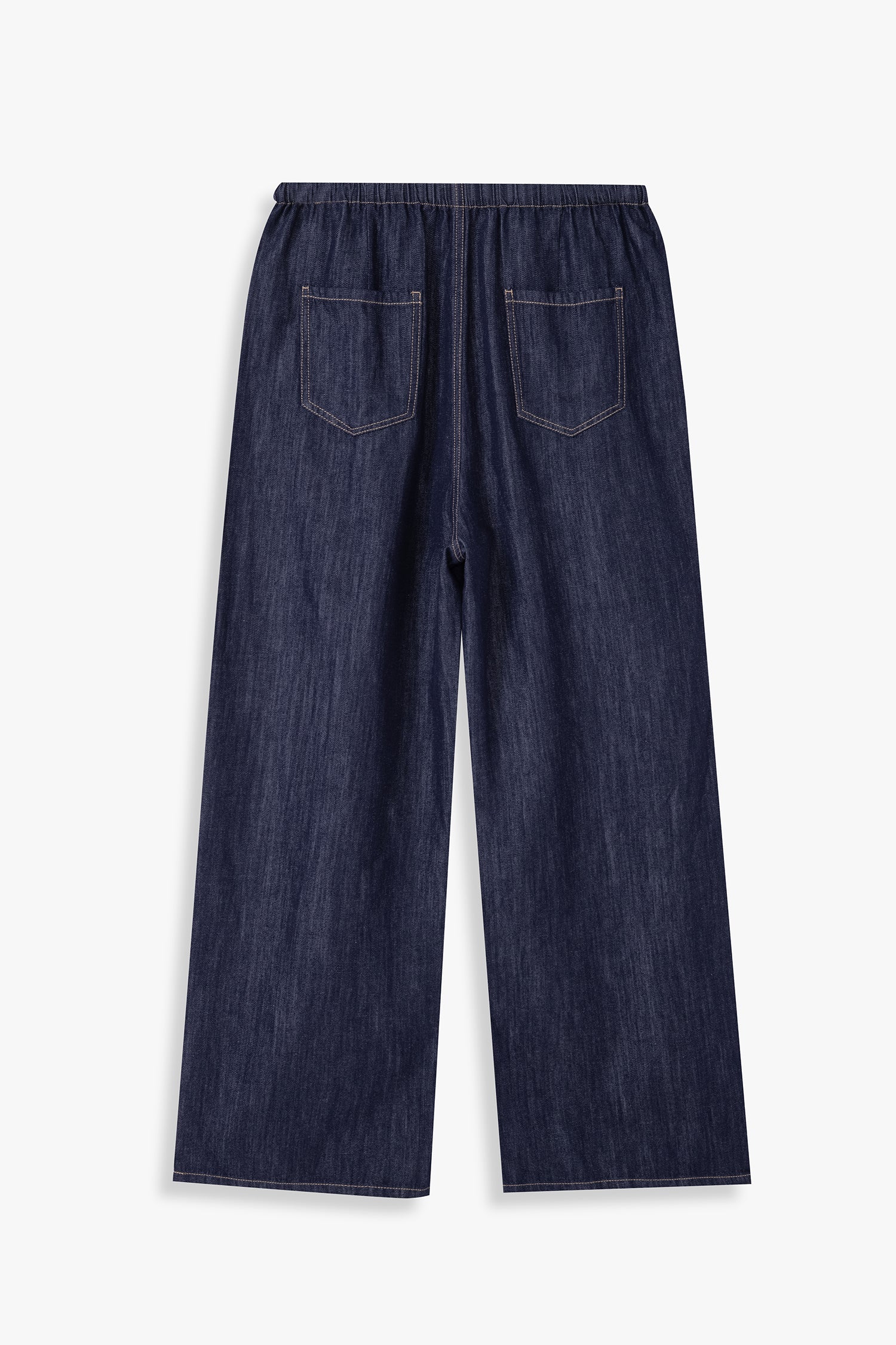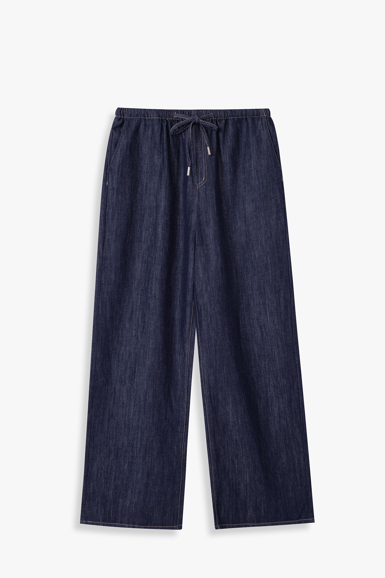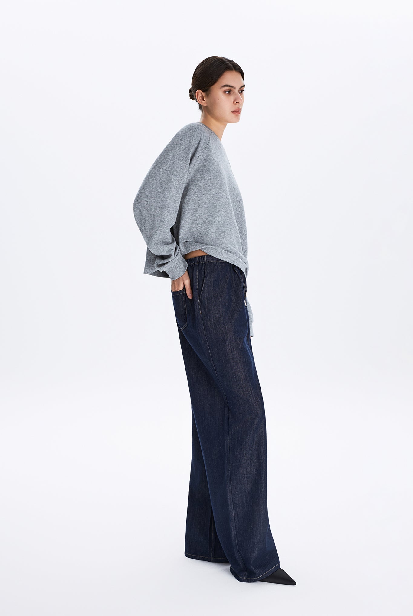 Relaxed drawstring wide-leg jeans crafted in soft denim, combining effortless comfort with MONOLOQ’s modern, minimalist sophistication.