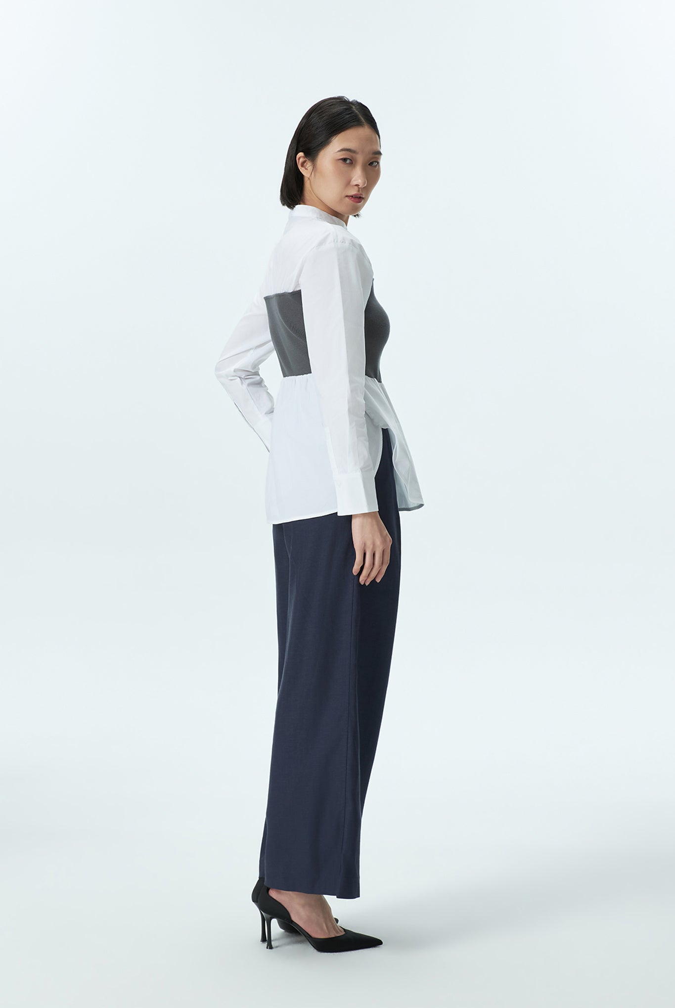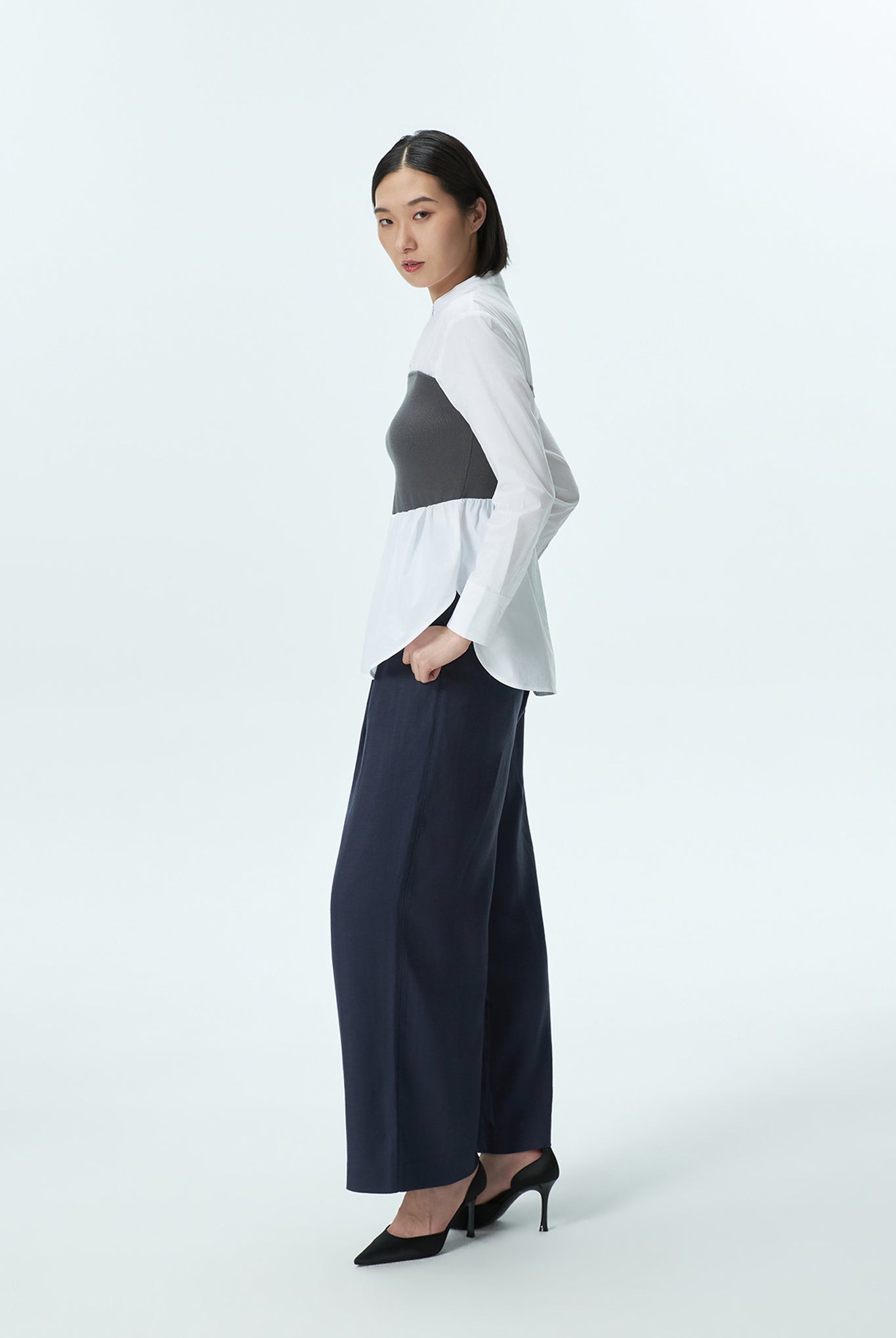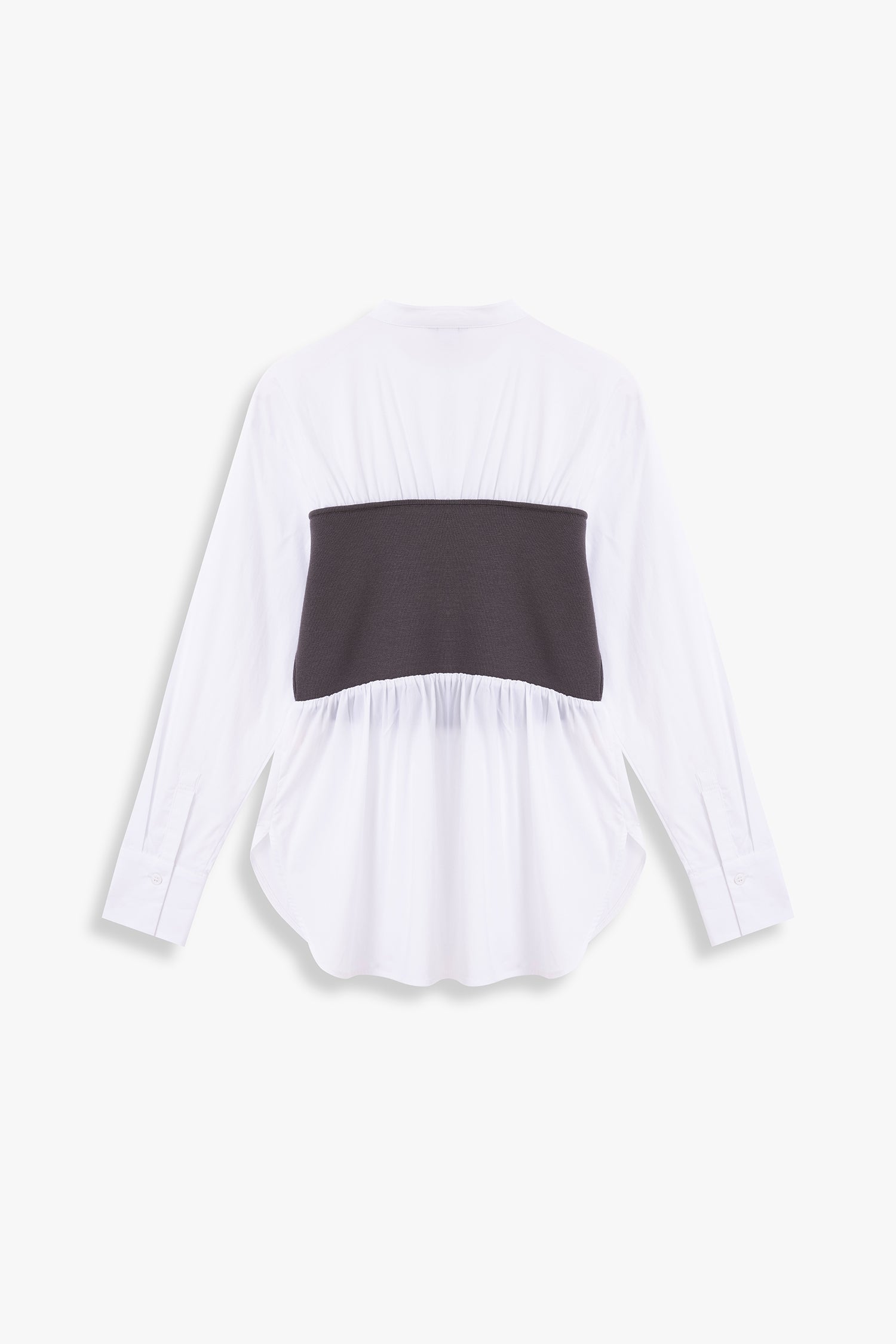 The Knit-Panel Shirt blends structure with softness - a style so ever dynamic that features a crisp woven body contrasted by textured knit panels for a modern mix of tailored sophistication and effortless comfort.