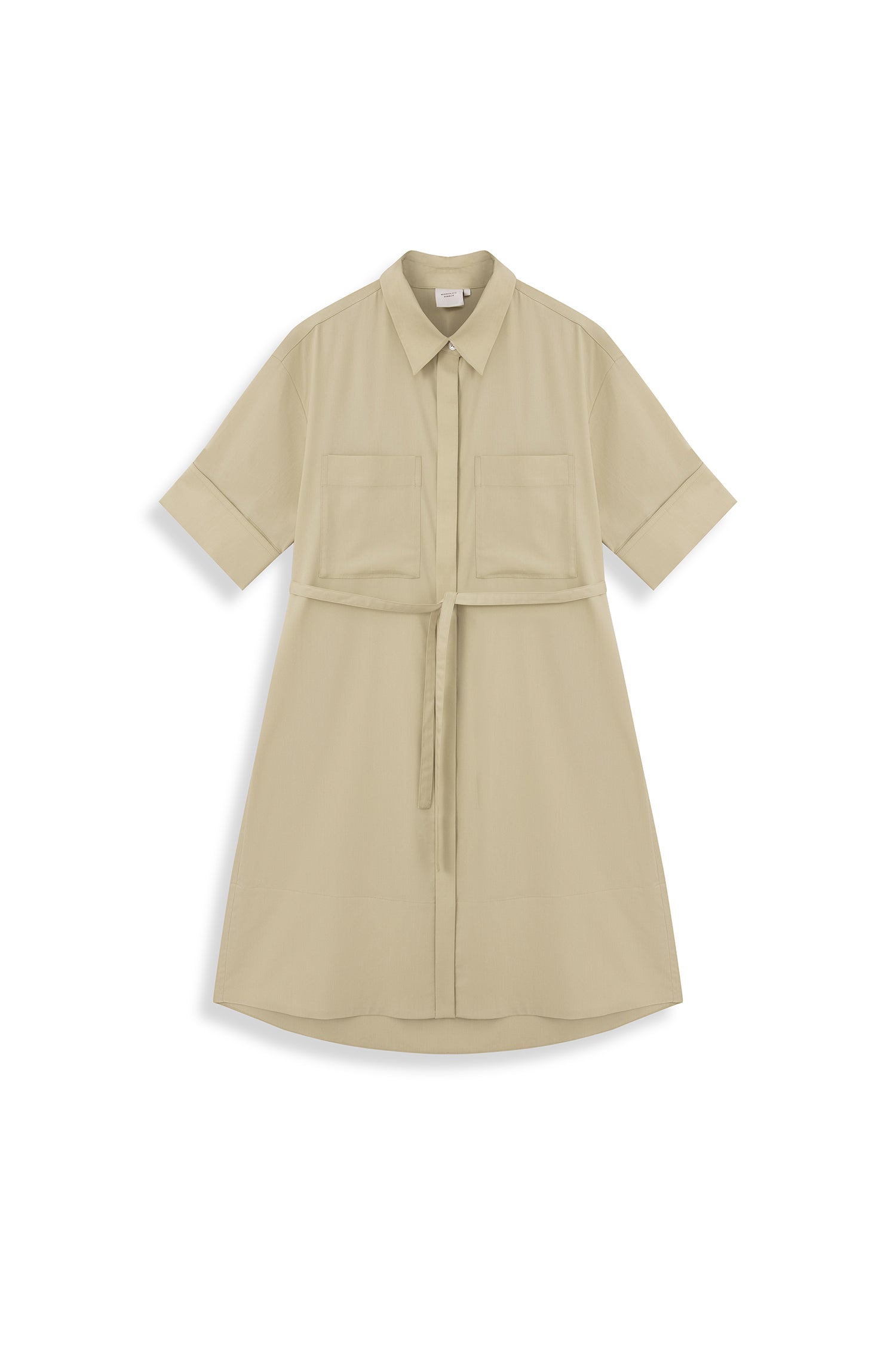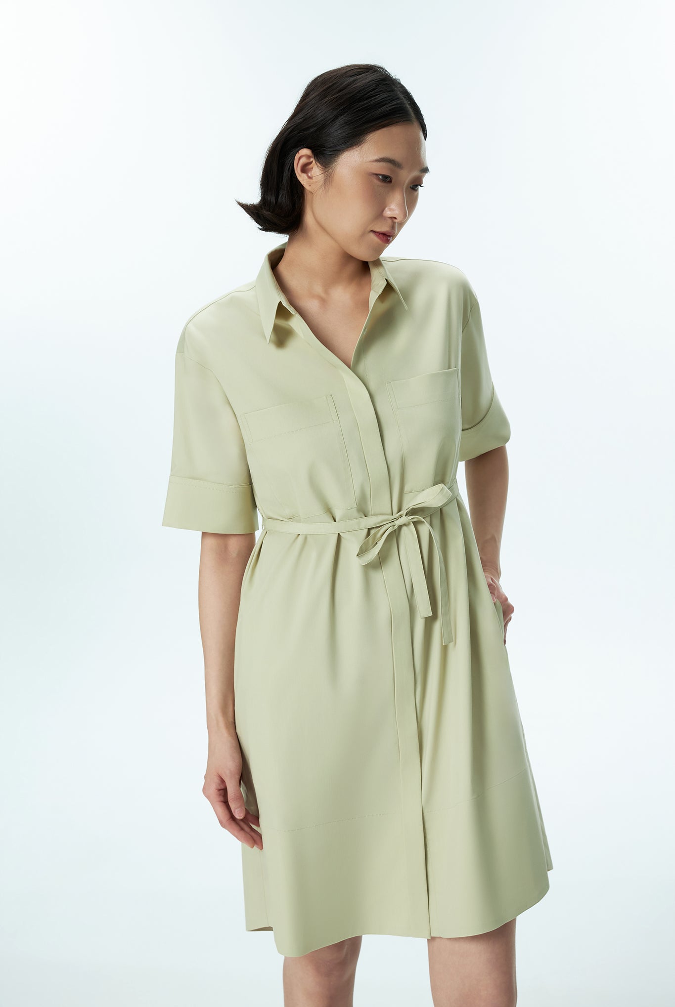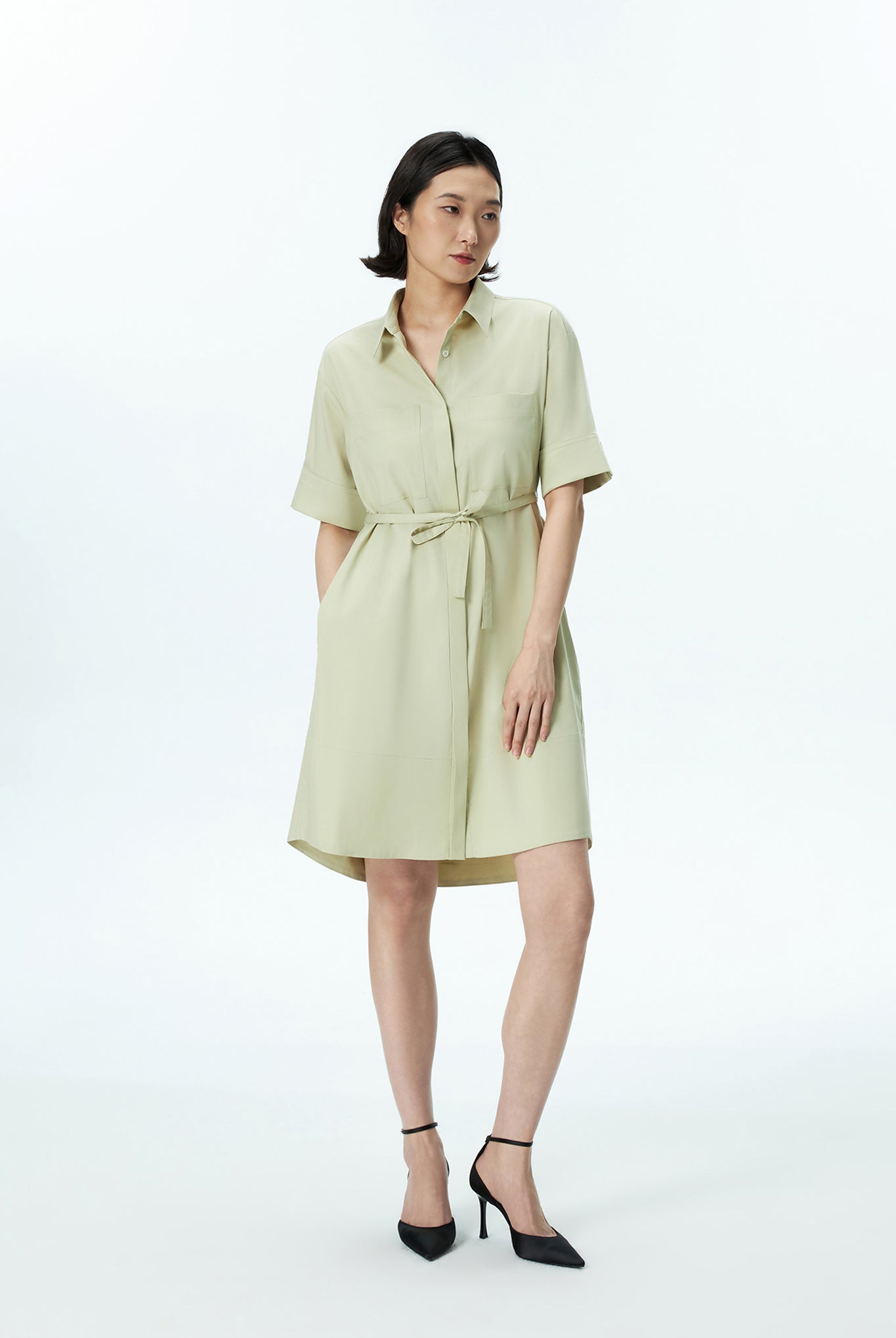 A versatile piece with understated sophistication. This short-sleeve shirt dress features a concealed button placket and front patch pockets that lend a touch of utility to its clean design.