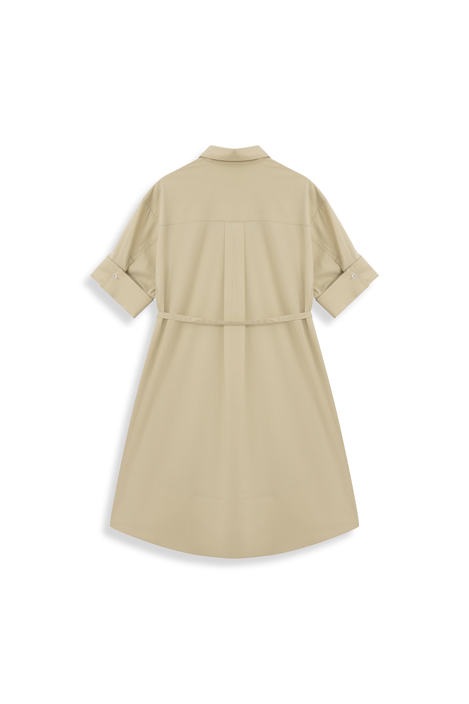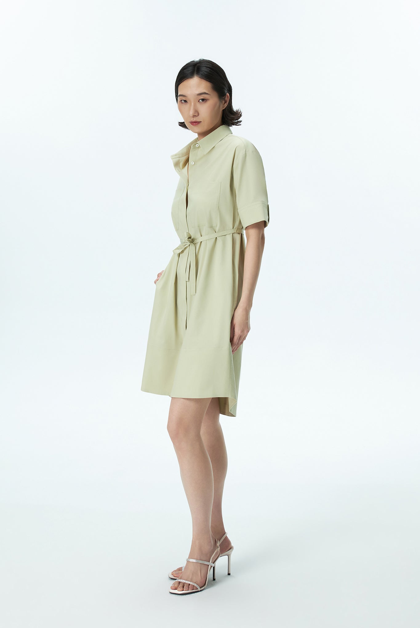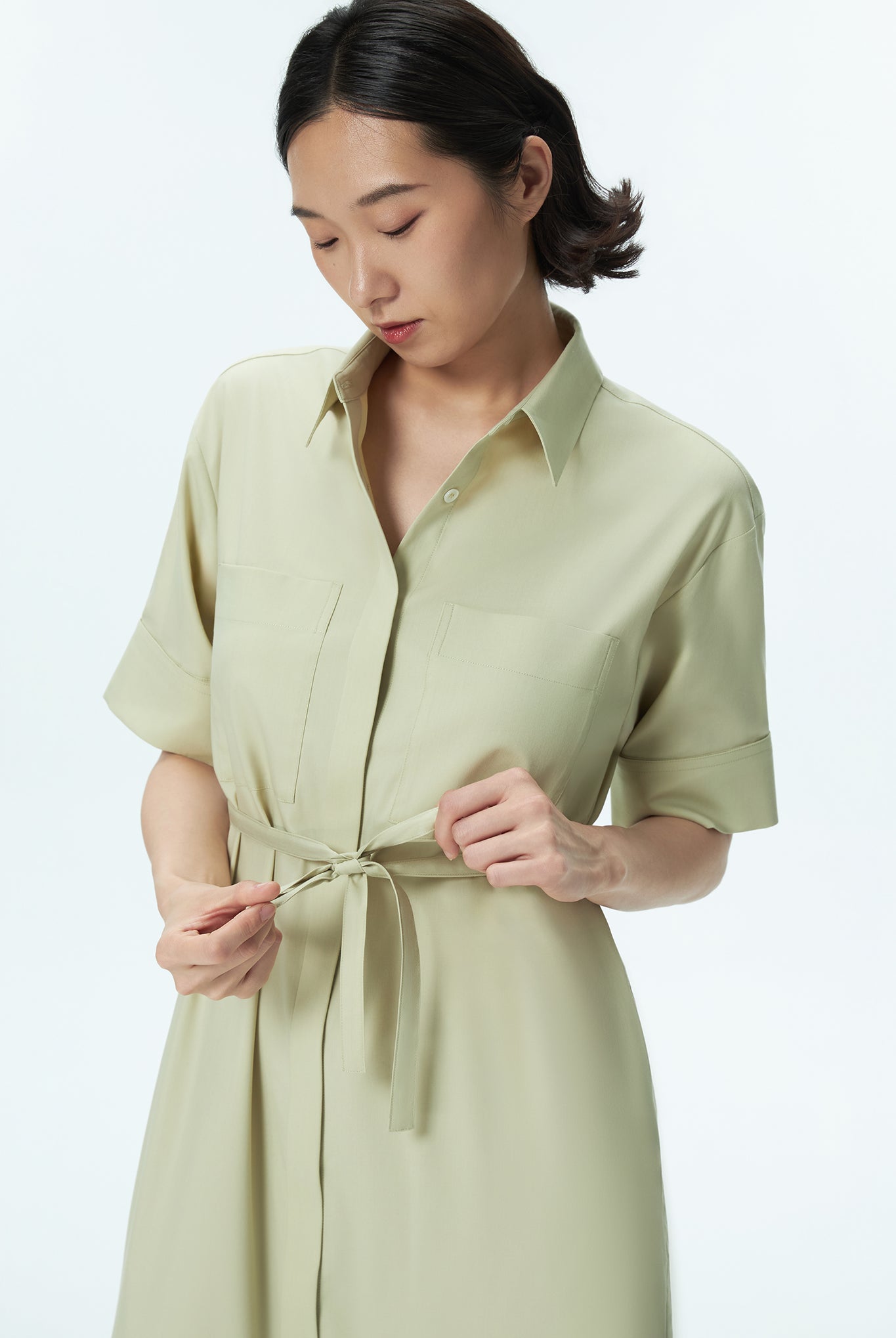 A versatile piece with understated sophistication. This short-sleeve shirt dress features a concealed button placket and front patch pockets that lend a touch of utility to its clean design.