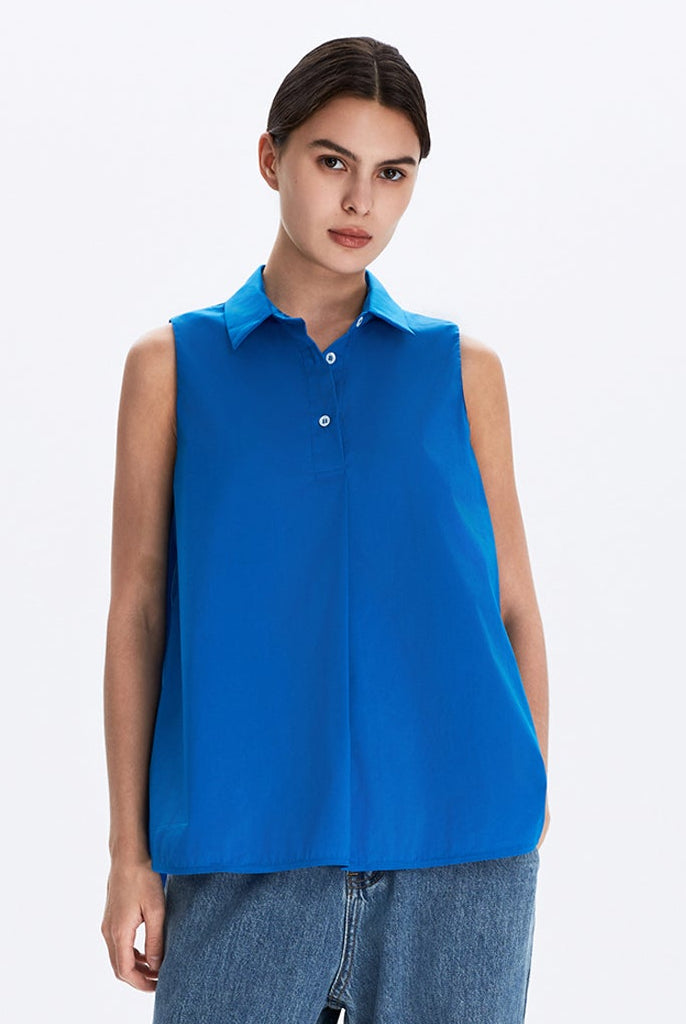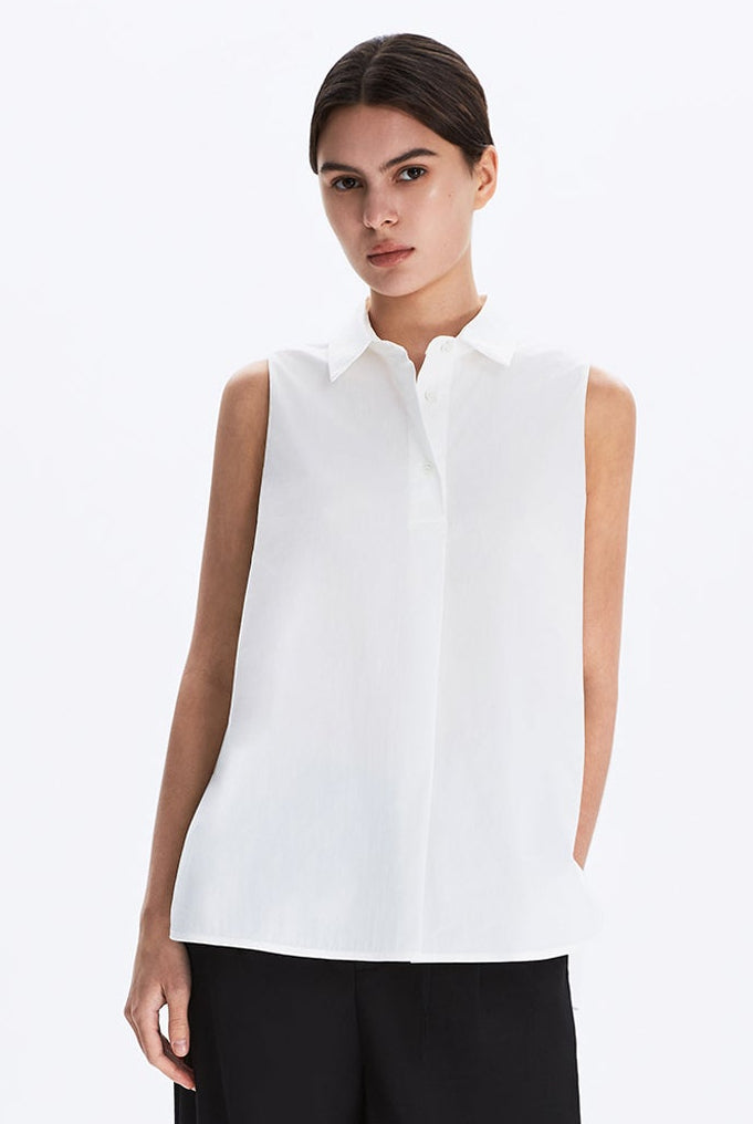 Sleeveless Collared Placket Shirt