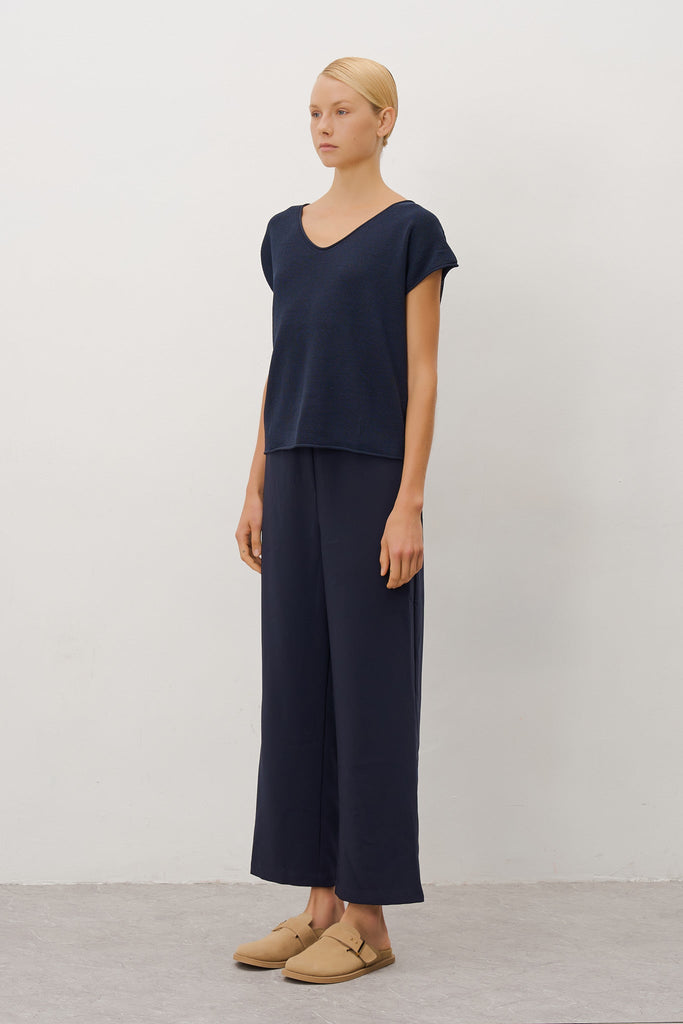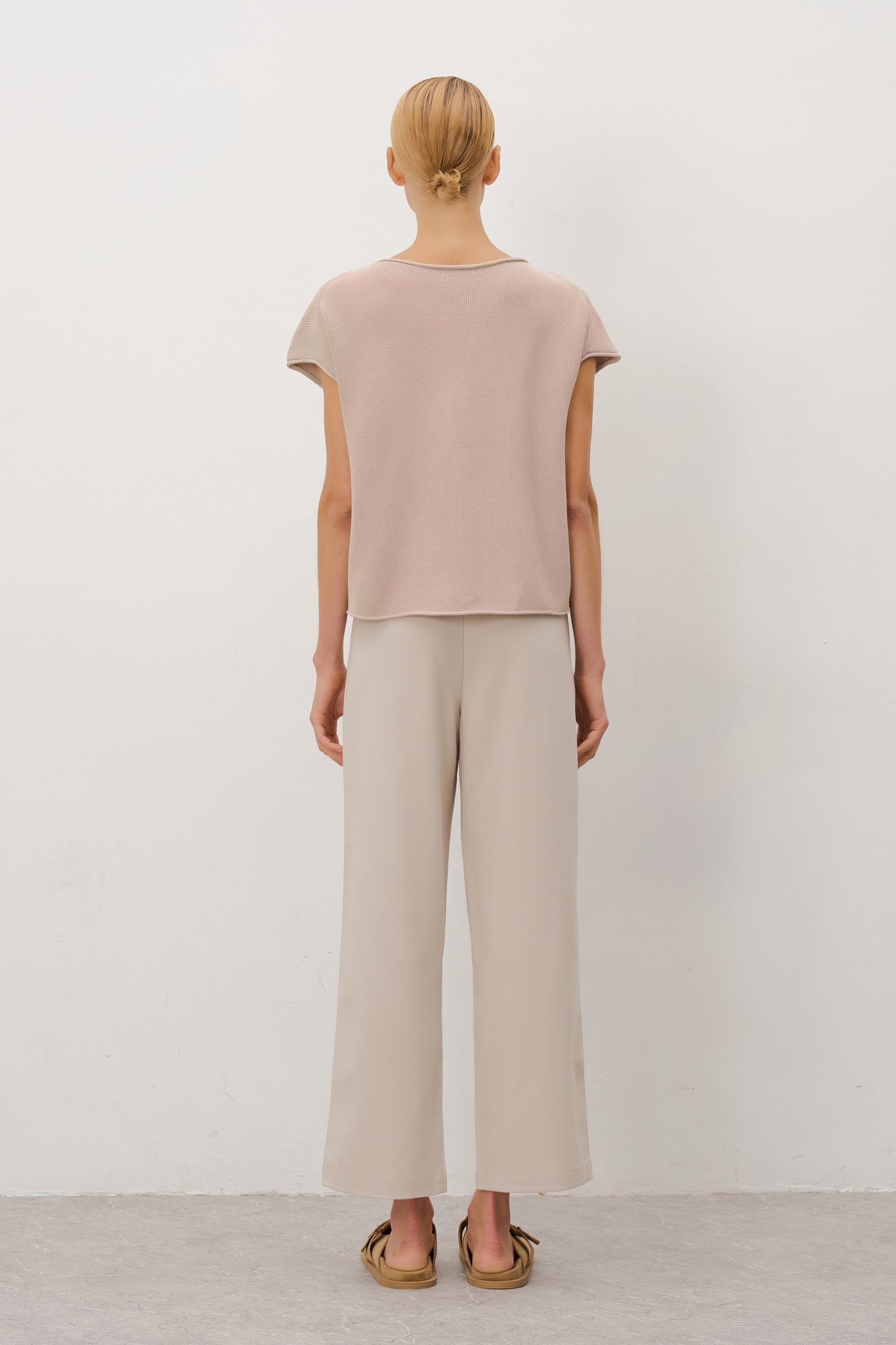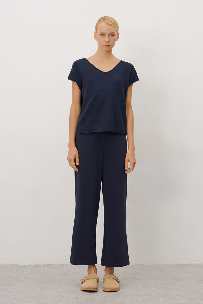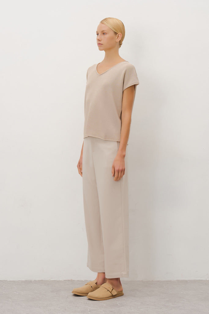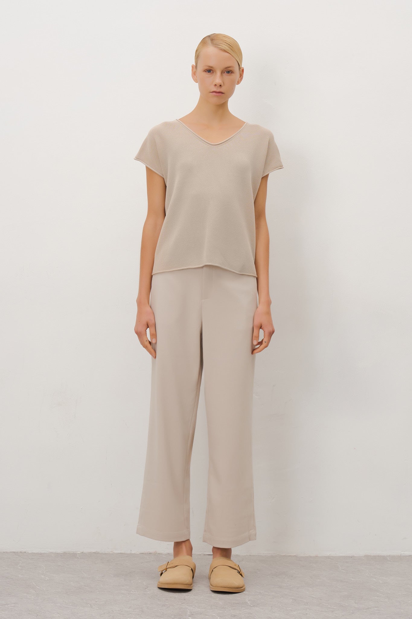 An easy choice to pair with all your favourite bottoms. Made from a knit that comes with a slight stretch, and designed with a V neckline and slight cap sleeves. So comfy, you'd want to live in it.