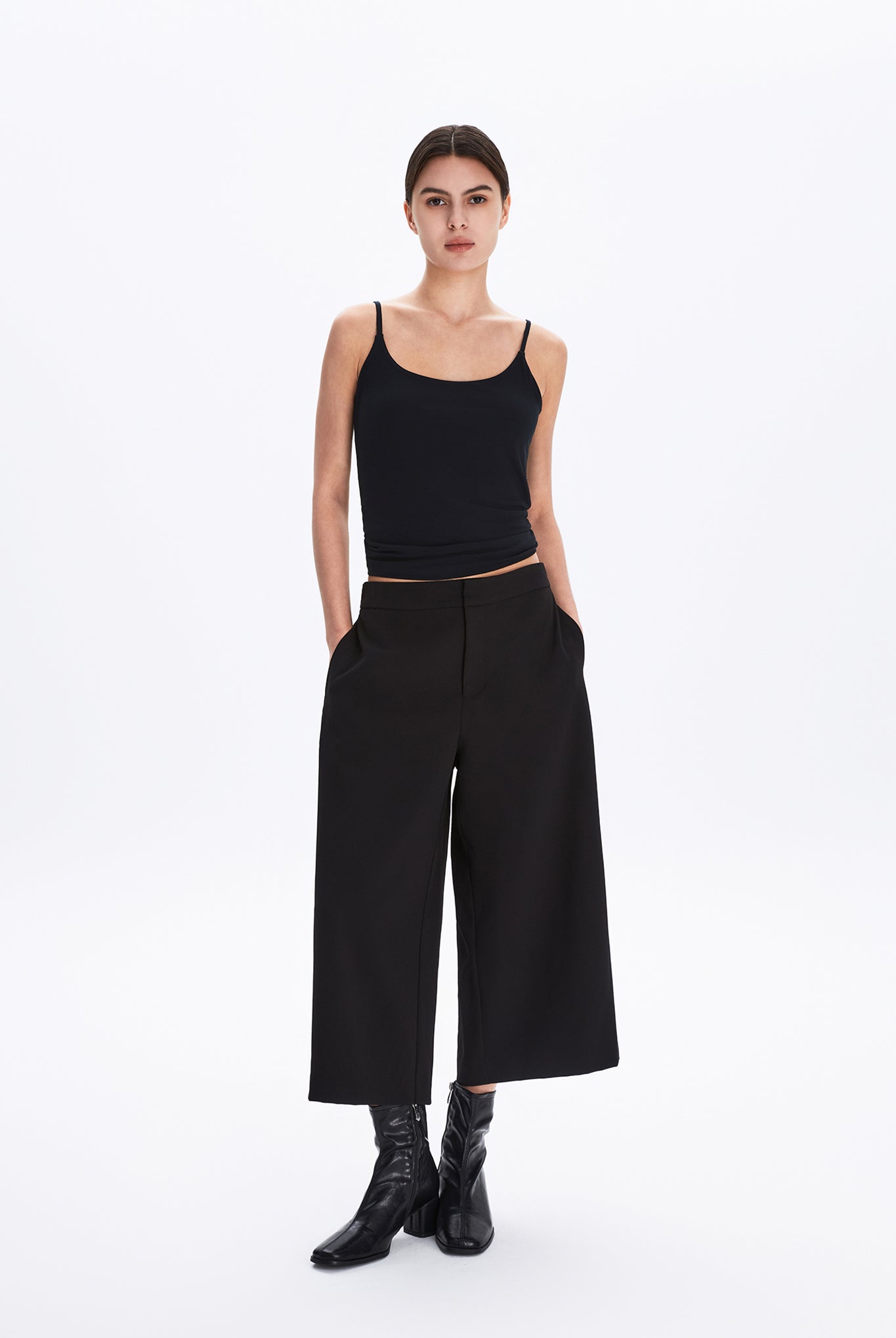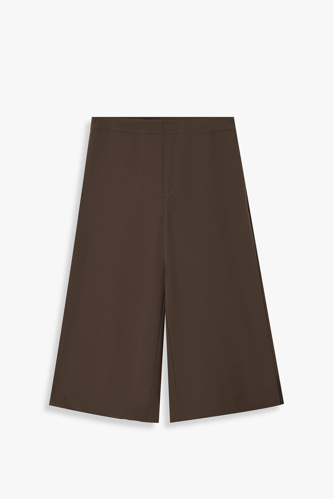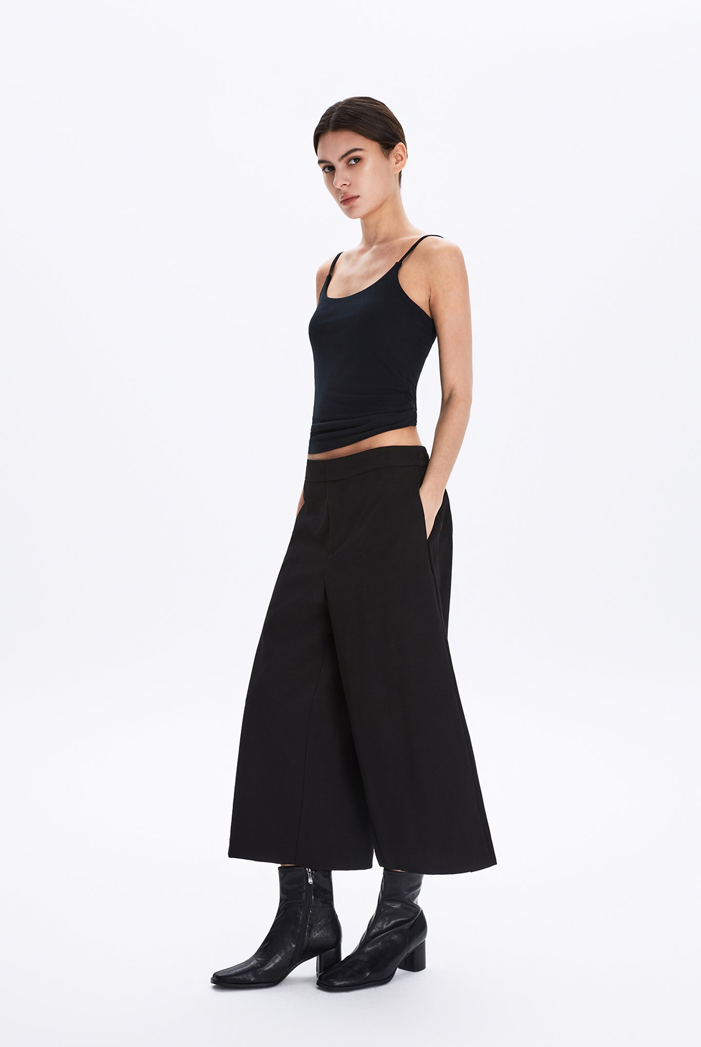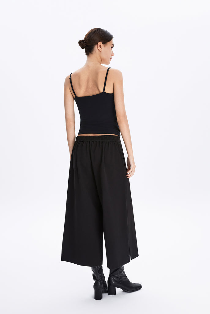 Our contemporary take on the modern suit, with minimalist refinement. This wide leg, with elasticated waist features clean lines and a smooth silhouette. Crafted from a crepe, weighty fabric, it combines modern tailoring with effortless versatility for a polished, understated look. To be worn with a cape top.