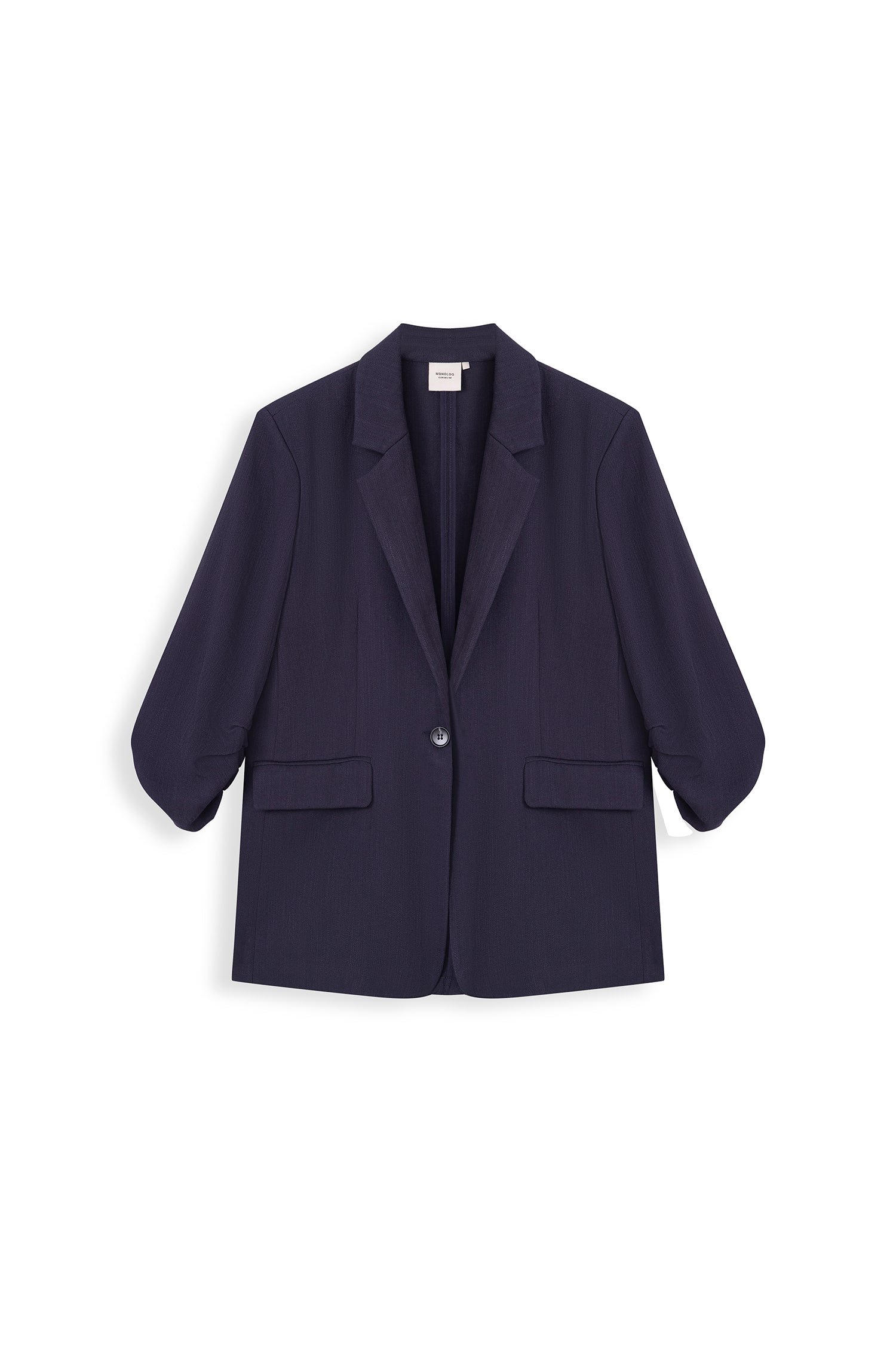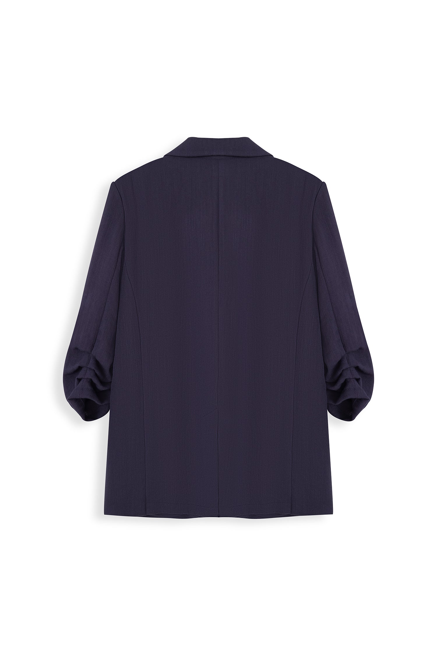 Elevate your style with this chic ruched sleeve blazer, designed to add a touch of sophistication to any outfit. Its tailored silhouette and gathered sleeves create a modern, polished look that's perfect for both work and evening wear.