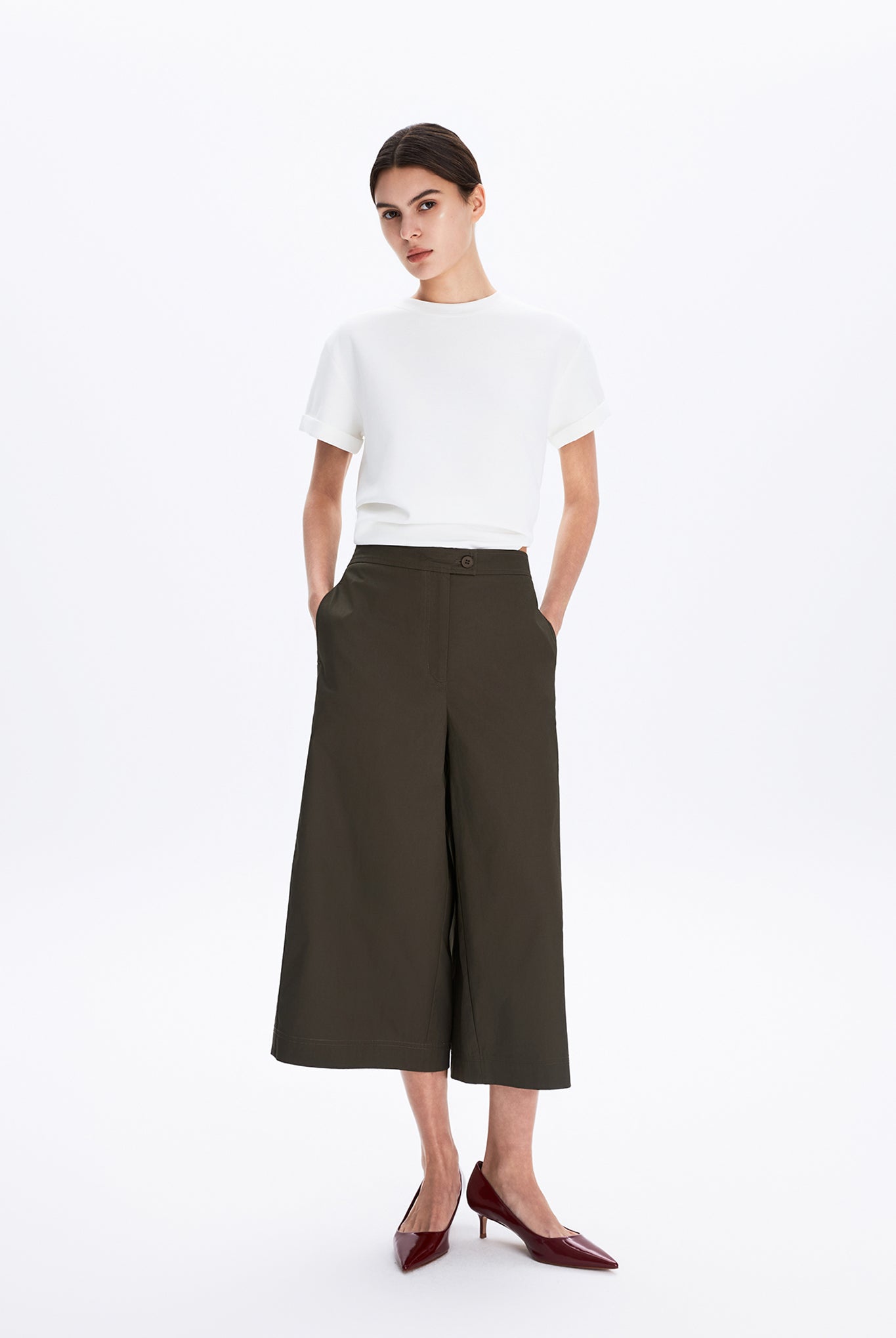 A modern silhouette with effortless flow. This wide-leg pants are tailored with a high-rise fit and clean front for a refined, elongated look. Crafted from woven fabric with a fluid drape, they strike the perfect balance between structure and ease.