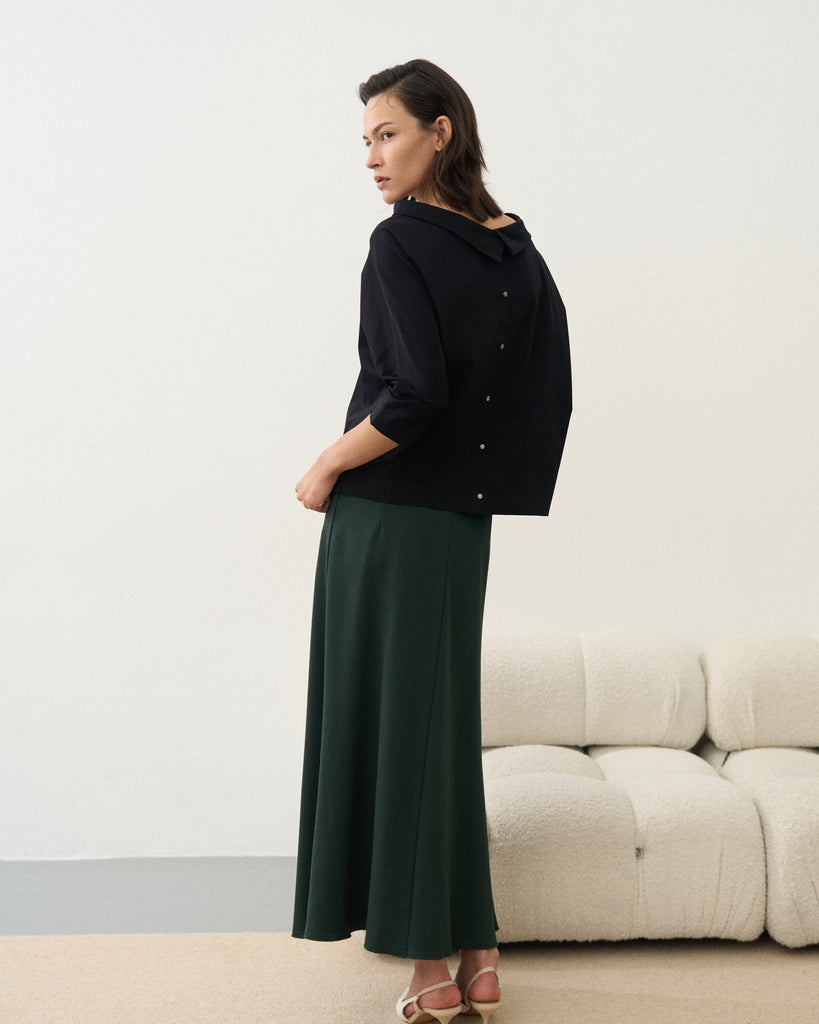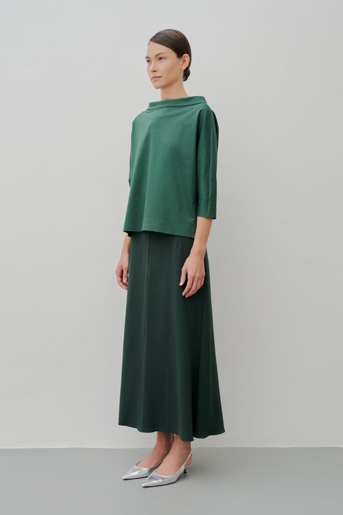Comfort throughout your day. Our new A-line maxi skirt is soft, stretchy, and made to feel like second skin, and is cut to flow beautifully as you move. Finished witha concealed side zip closure.