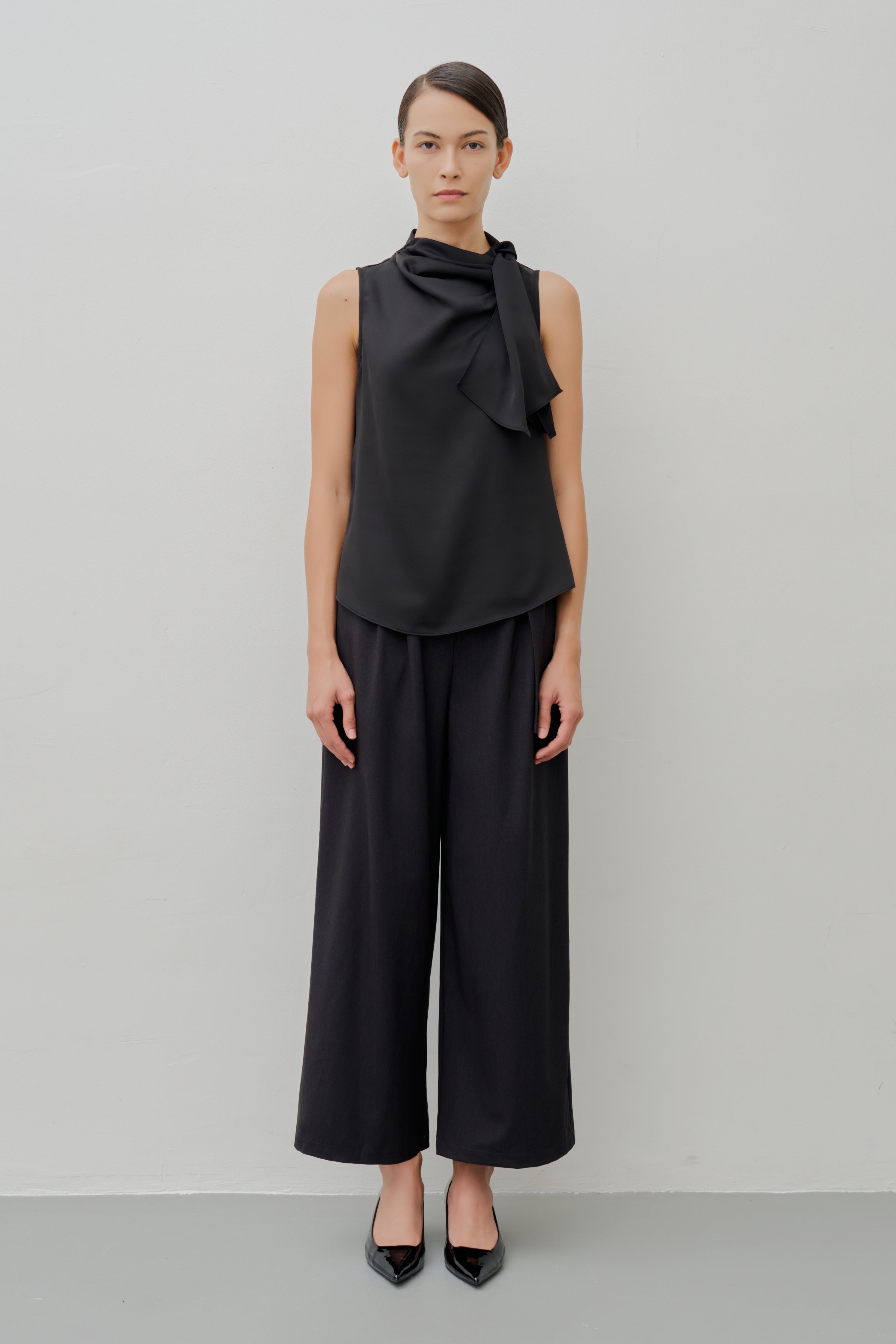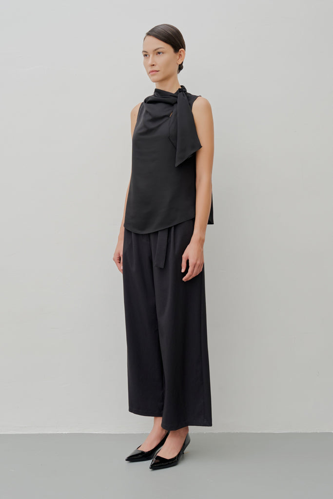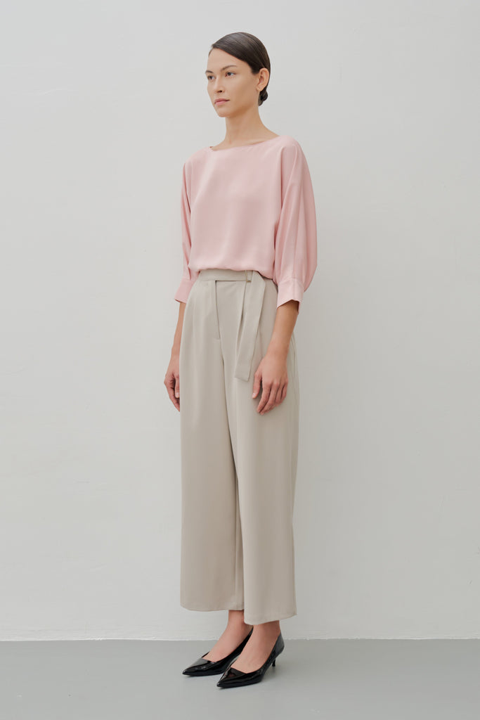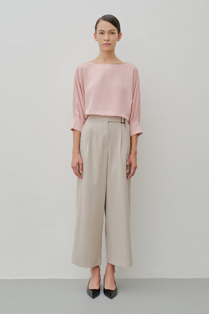 Our new office to evening staple. You'll be living in these pair of relaxed full-length pants that are buttery soft and cool to the touch. Features a side buckle detail, double-pleat detail, front zip, a hook and button closure and two side pockets.
