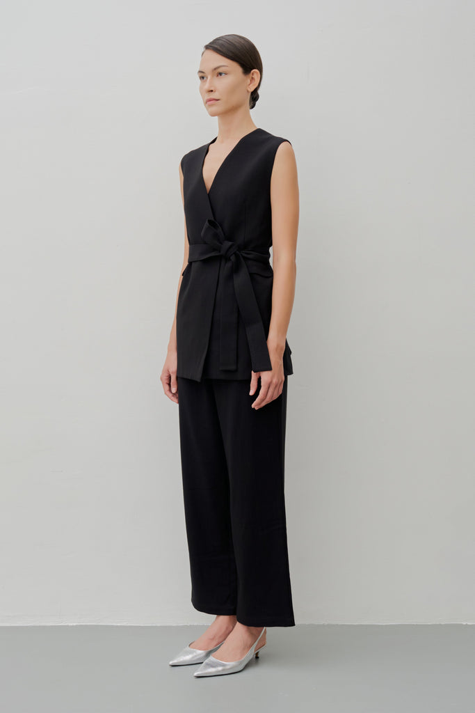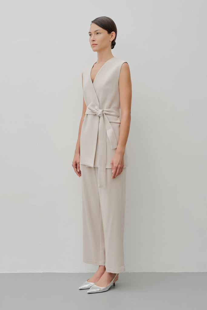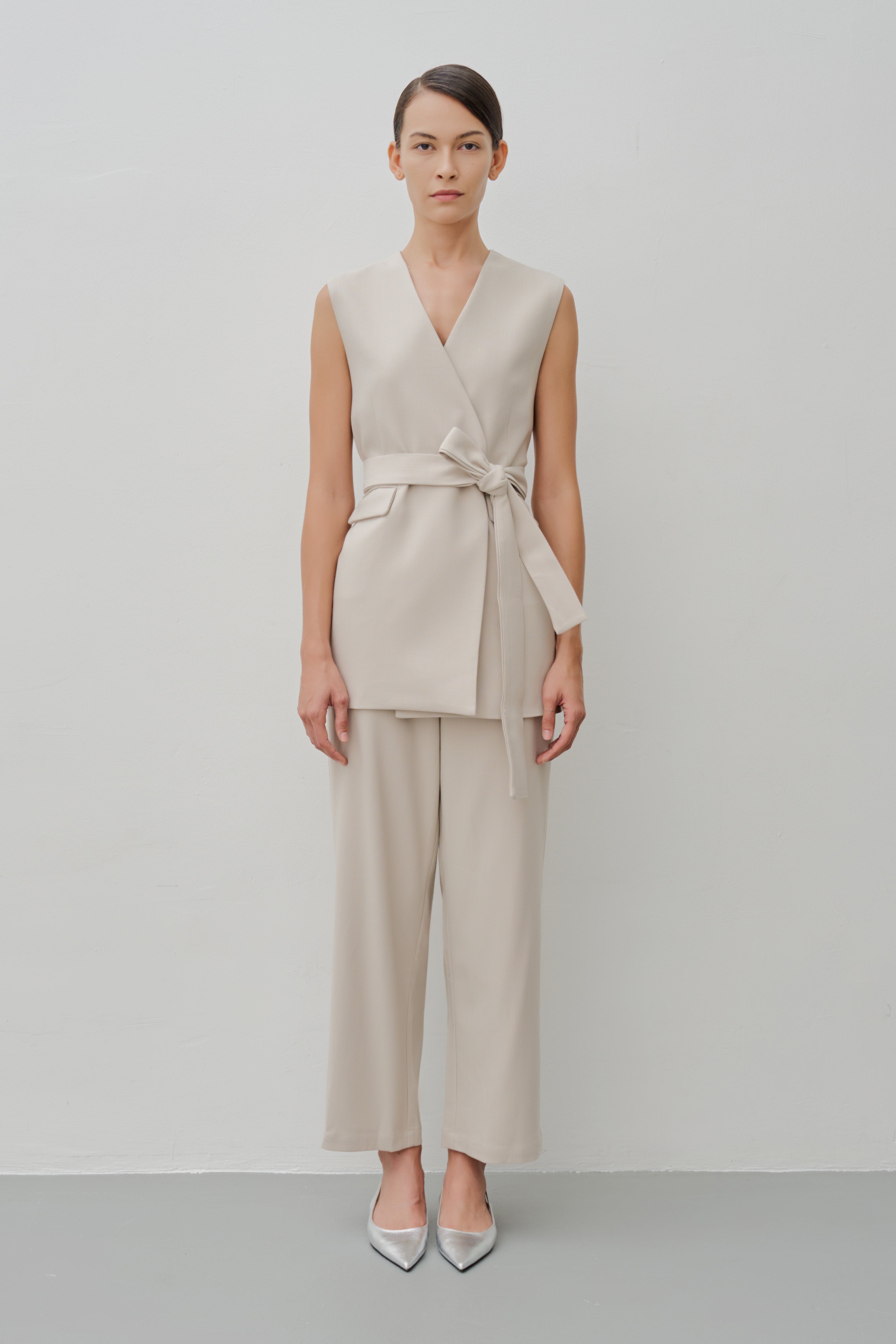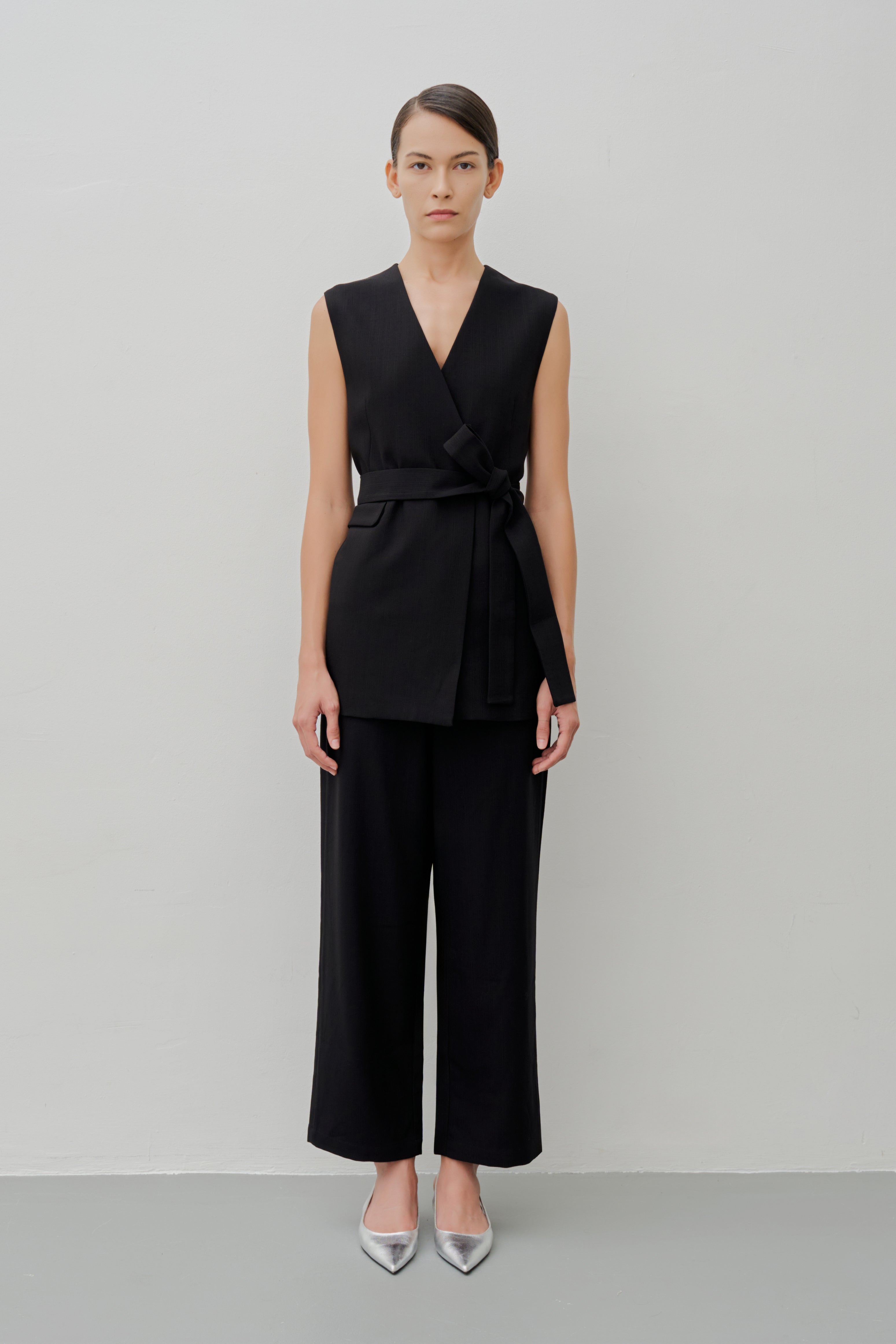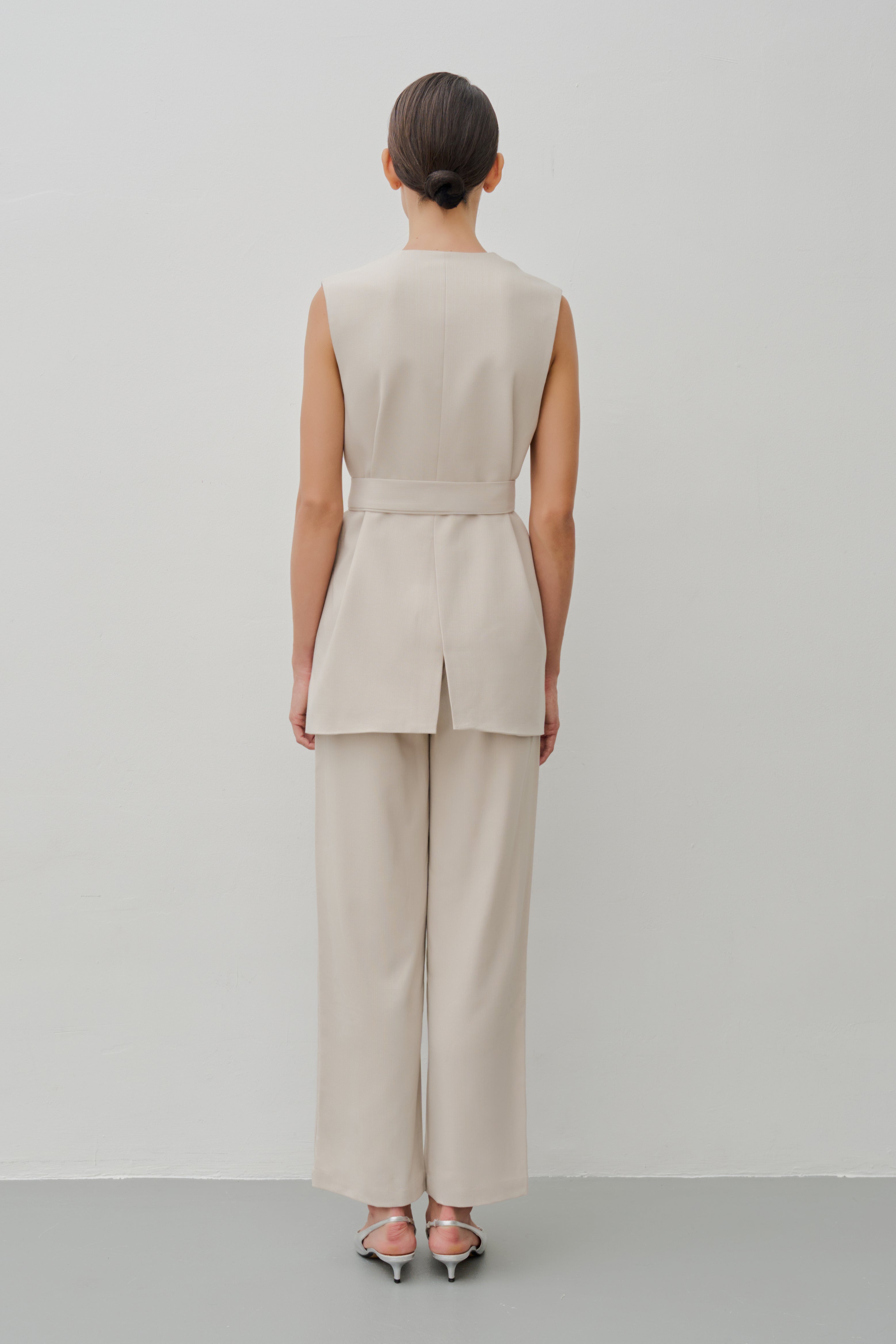 Expertly shaped with straight, full-length legs. Pair it with our matching Oversized Boxy Vest to complete the look. Featuring a high-waist, front zip and hook closure, and two side pockets.
