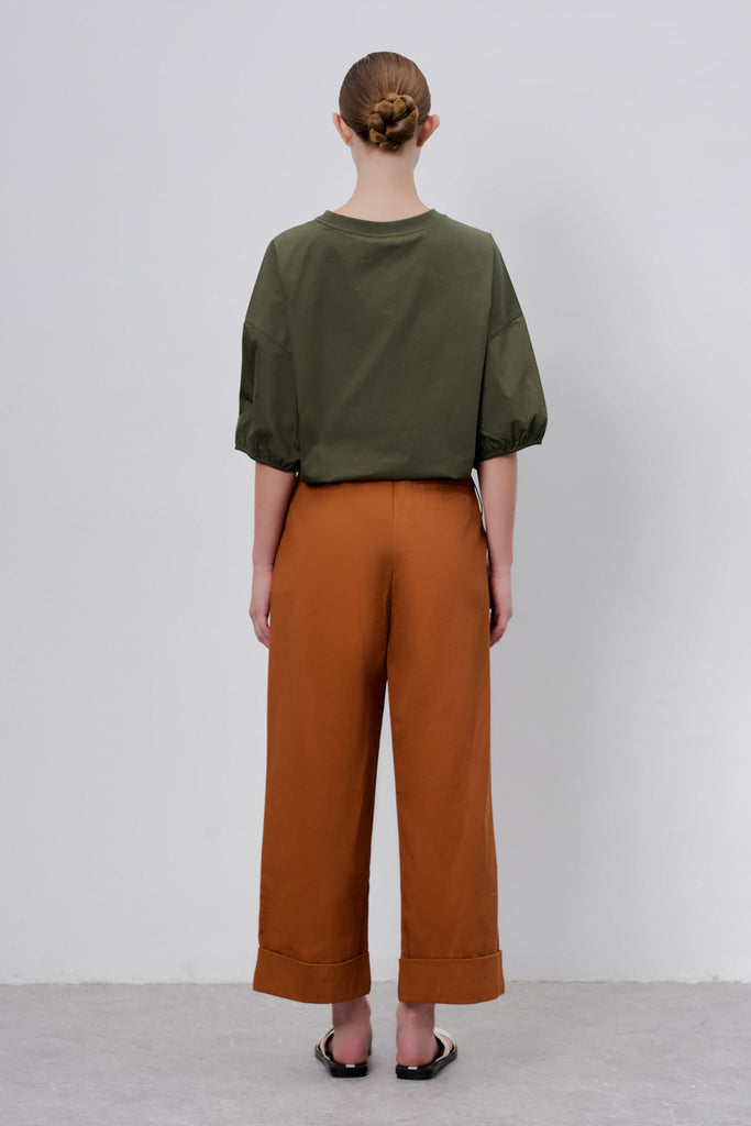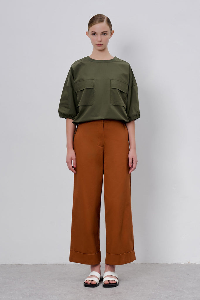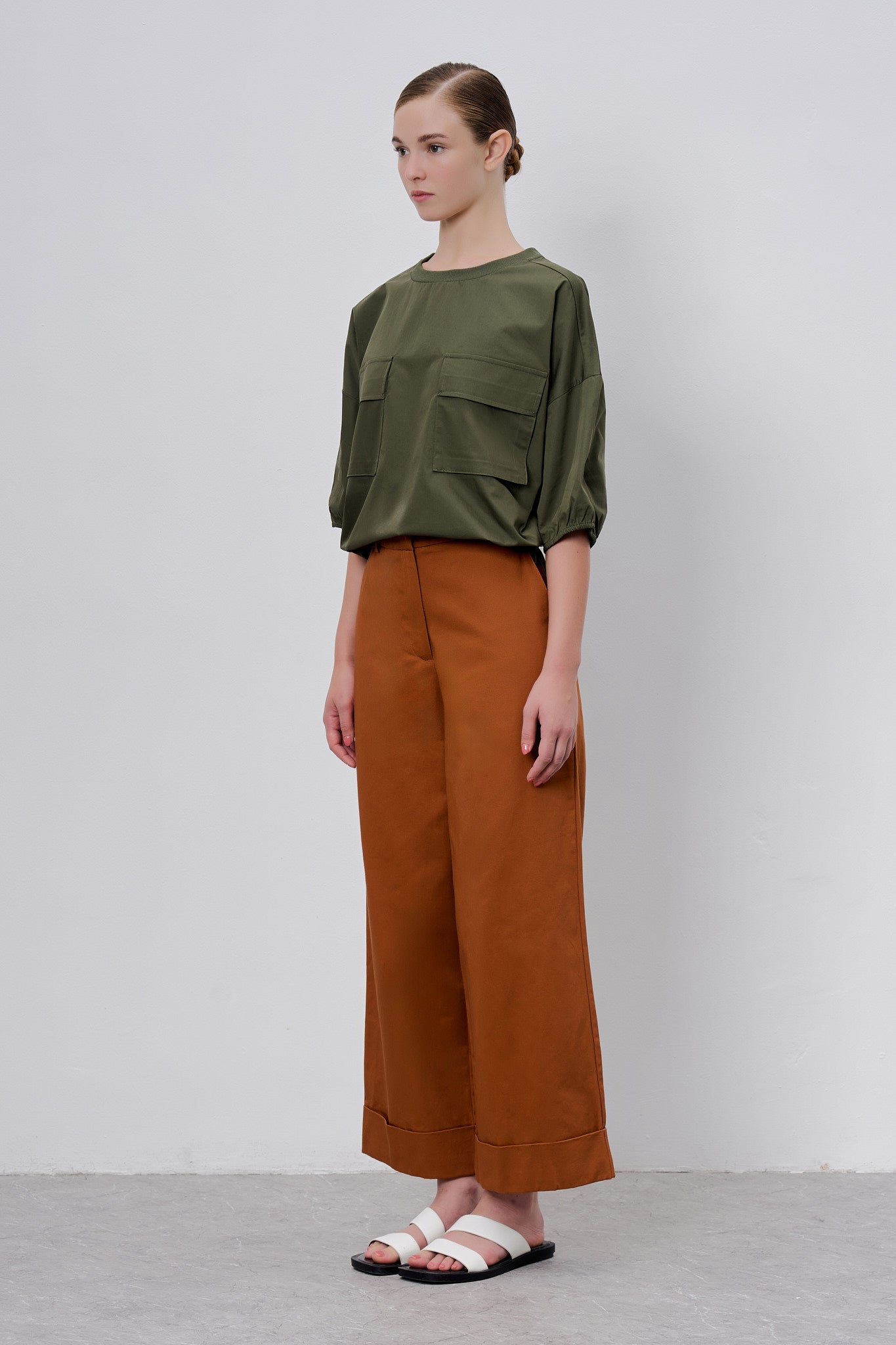Billowing gracefully with each step, our wide-leg trousers evoke a timeless sense of sophistication and flair. Experience the epitome of style and comfort, while elevating your everyday look with a flattering silhouette.