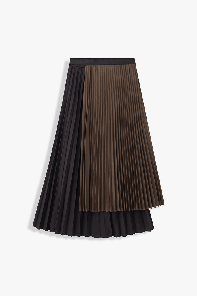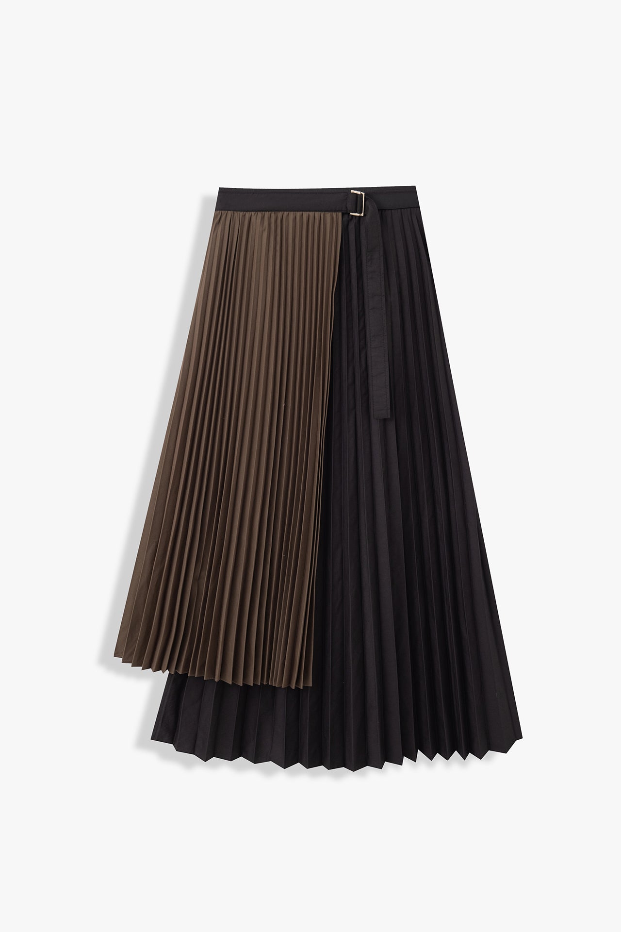 Step into sophistication with our Pleated Contrast Wrap Skirt, a piece that captures the essence of modern elegance. Featuring dynamic pleats and contrasting panels, this wrap skirt tells a story of bold style and graceful movement, perfect for making a statement at any event.