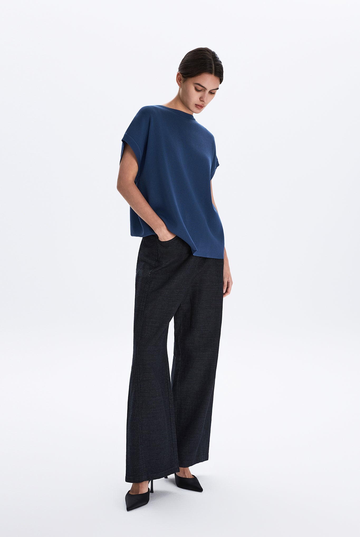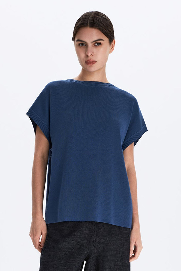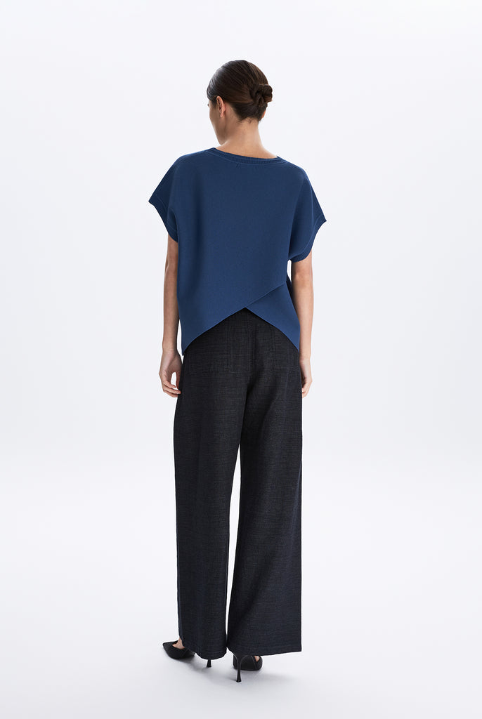A timeless piece defined by relaxed structure. This round-neck top features a boxy silhouette that offers a gentle drape and an overlap design feature on the back.