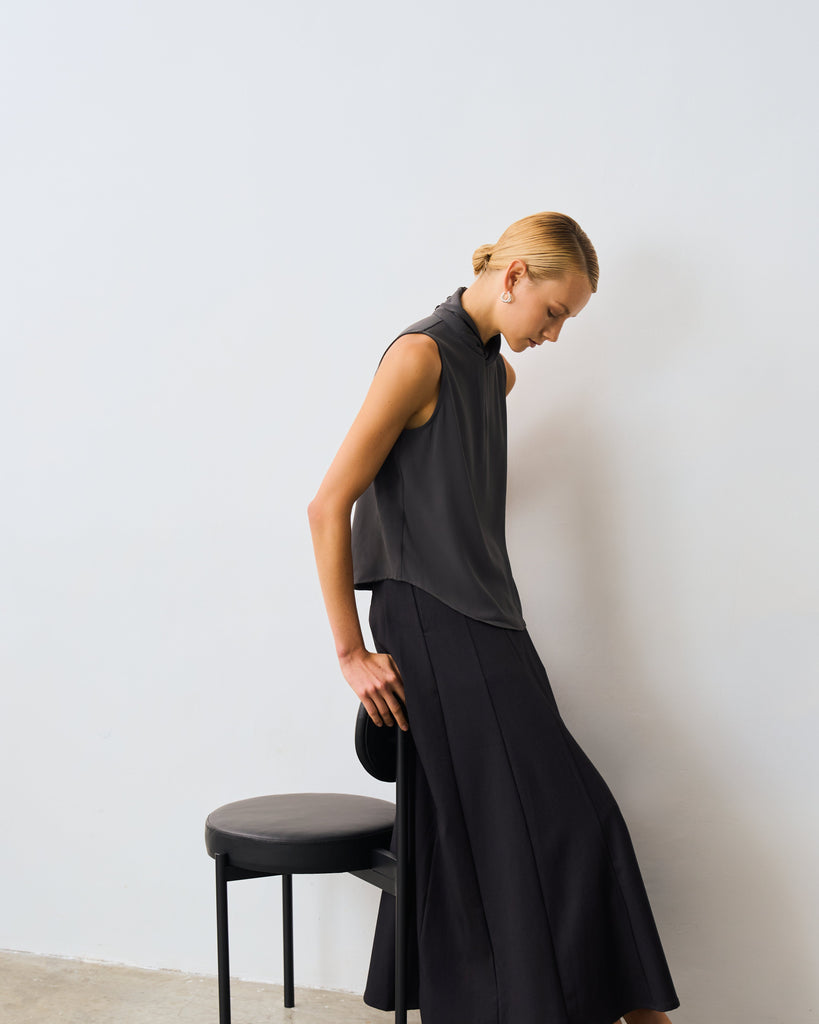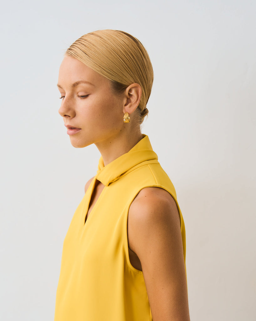 A forever staple to pair with all your favourite bottoms. Made from lightweight polyester fabric that's smooth to touch. Features a twist collar stand and V neck line that elevate your look effortlessly.