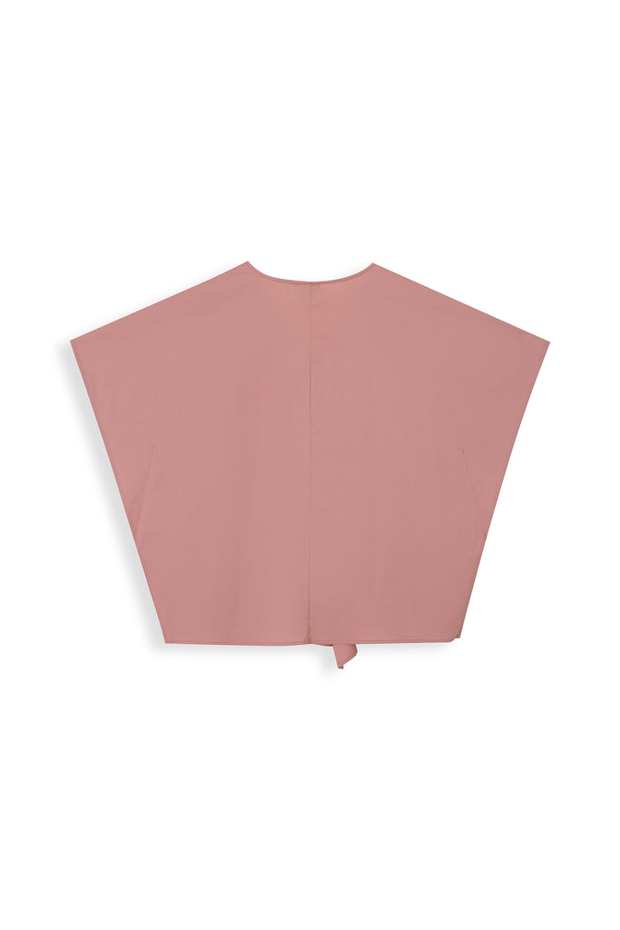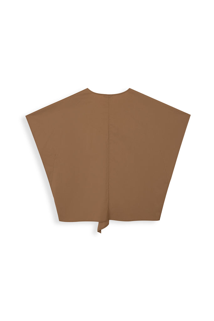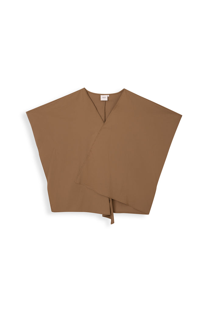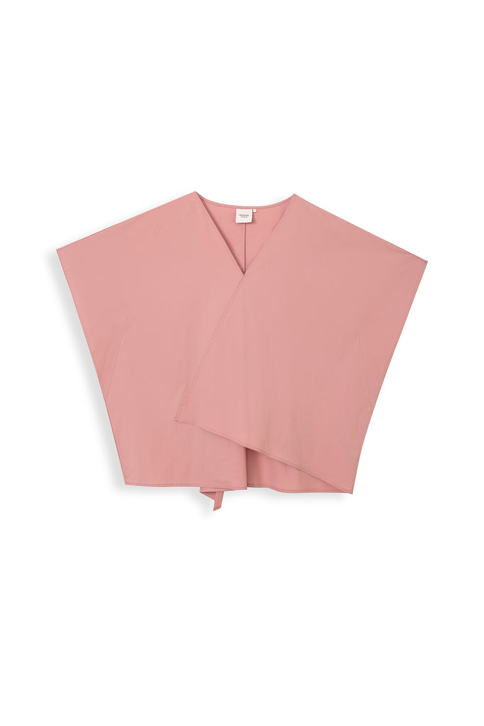 Crisp boxy V-neck blouse with overlapping front panels, relaxed drape, and clean minimal lines for effortless elegance.